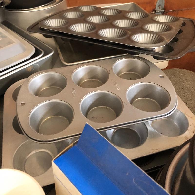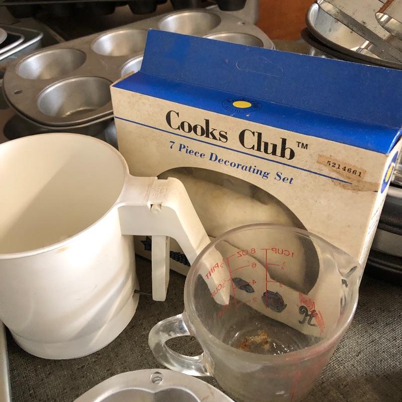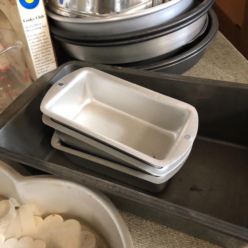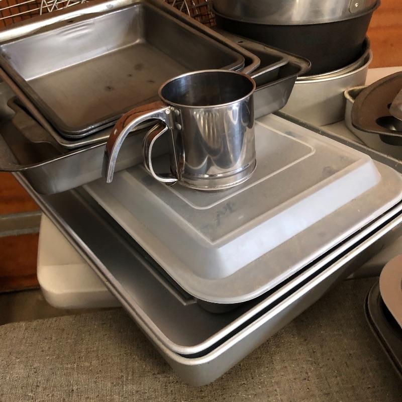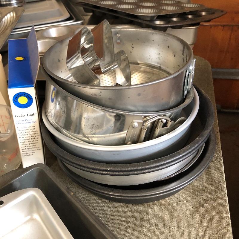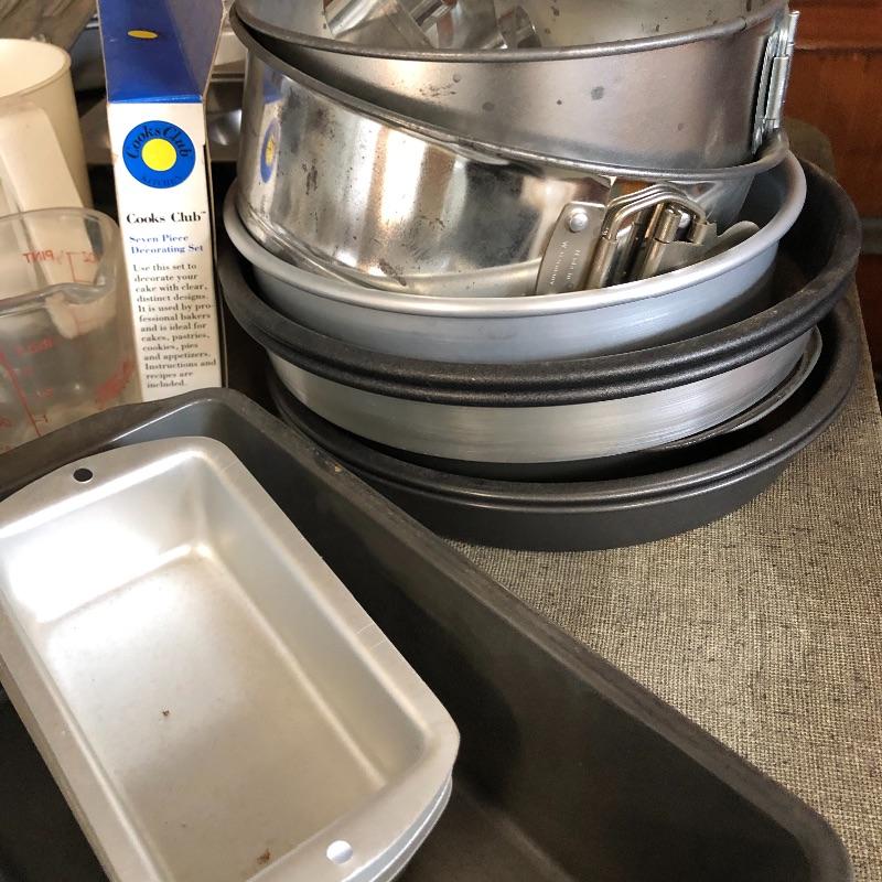 This lot contains absolutely everything you need to bake! It includes numerous cup cake tins, heart shaped baking sheets, a variety of sizes of cake pans, numerous round cake pans, numerous cooling racks, a couple of flour sifters and more! Local pick up only.