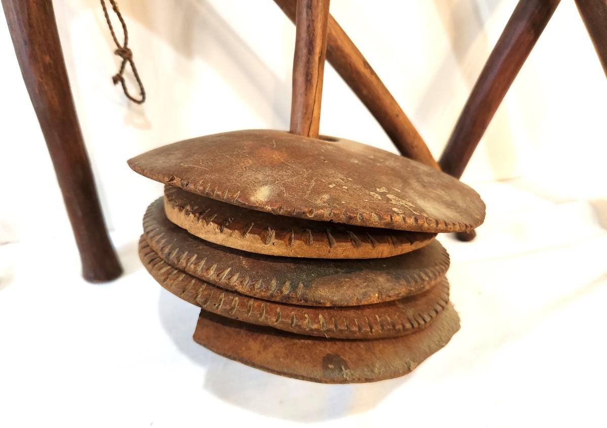 Bambara Tribe (African) dance rattle and two extra frames. 20" tall - antique condition.