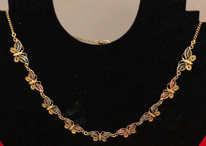 Lot 240 Butterfly filigree 16-1/2" Unknown Metal Necklace
