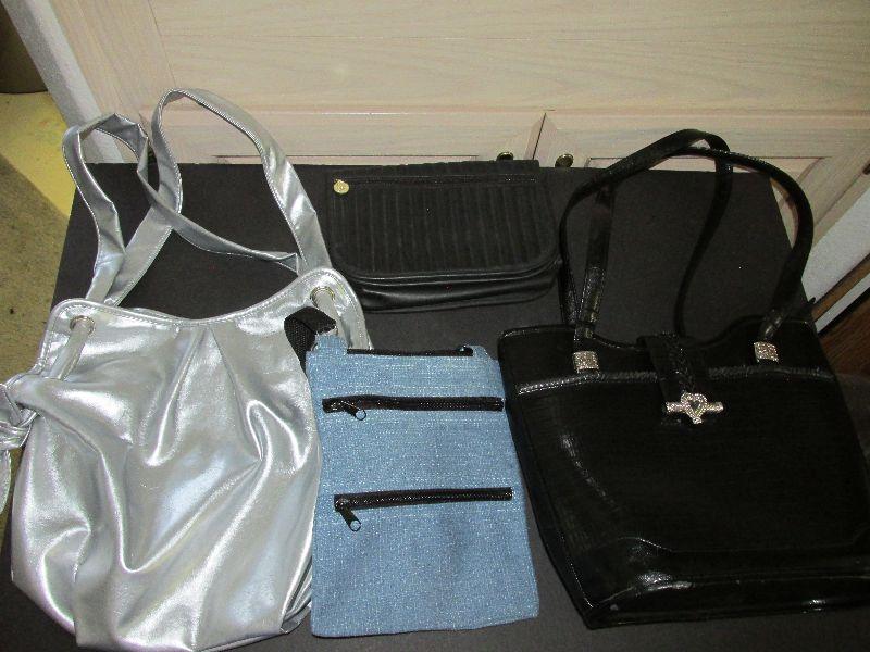Collection of three Made in China purses and one clutch. All are in varying conditions.