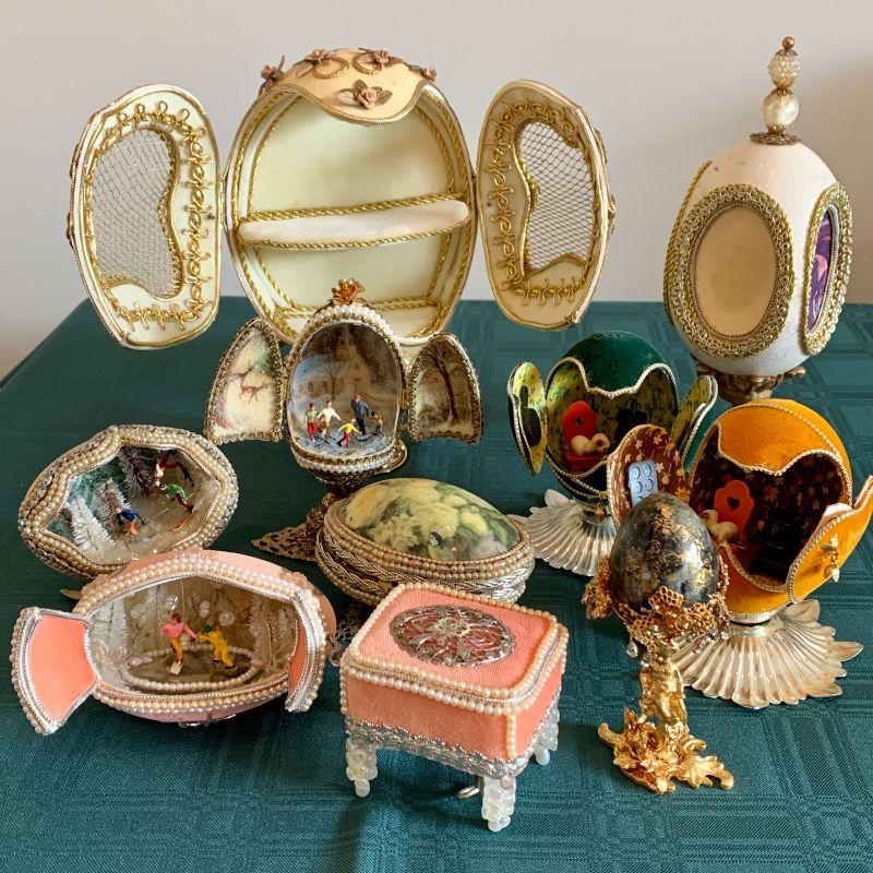 LOT 240 COLLECTION OF VINTAGE HANDMADE PANORAMIC EGG CRAFTS EMBELLISHED