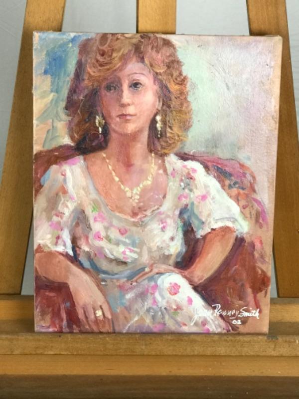 Jean Ranney Smith signed original oil painting on canvas “Lady Posing” portrait measures 14”x11”
