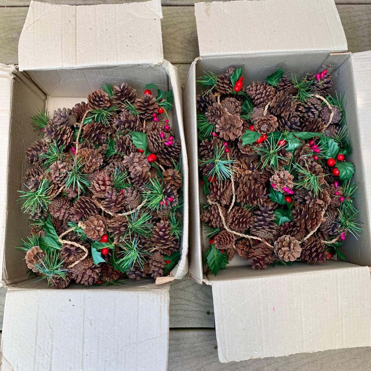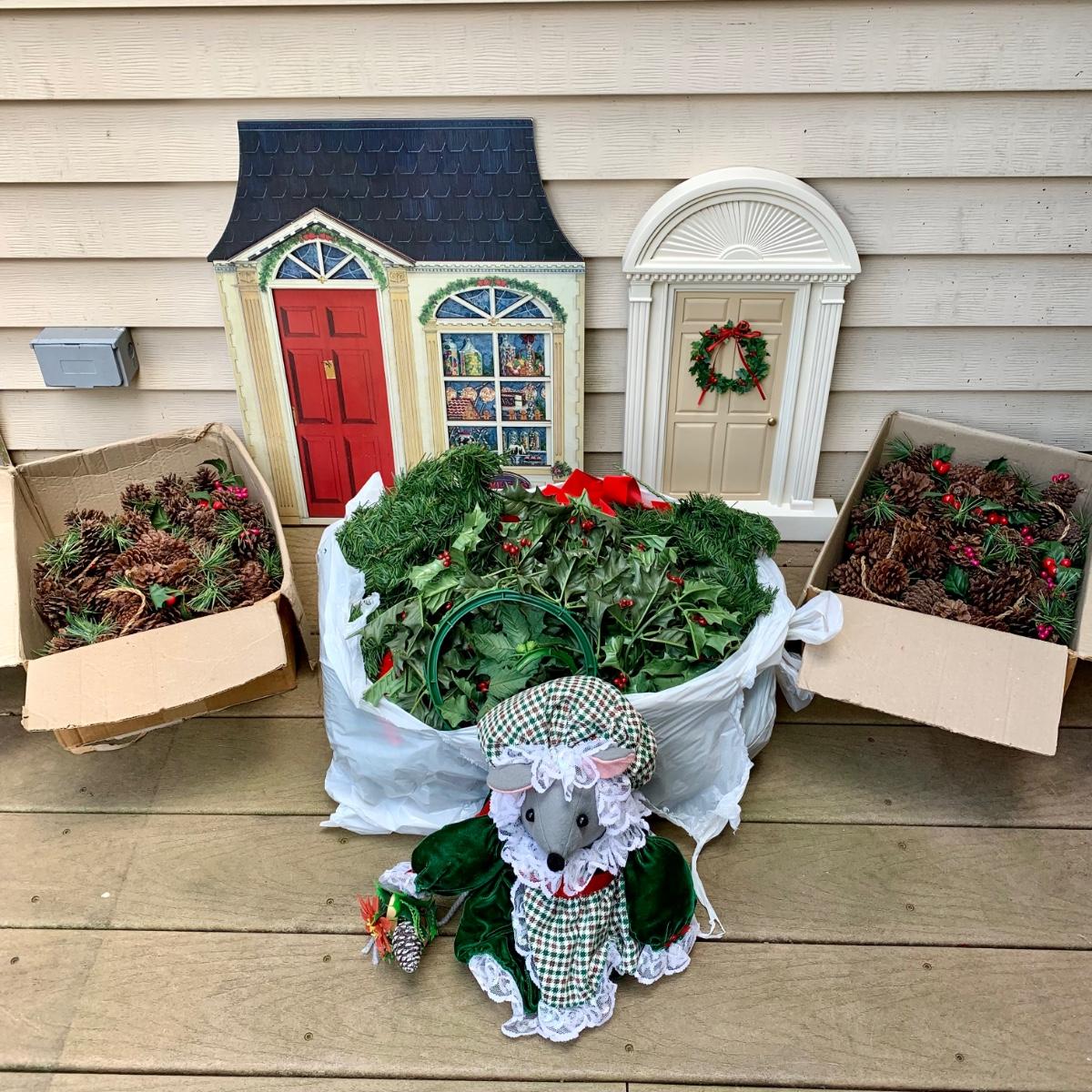 LOT 240 L: Christmas Decor Collection: Byers Choice Door Decor, Garland w/ Lights, Pinecone Garland, & More