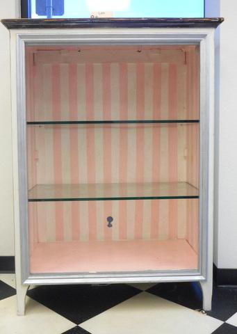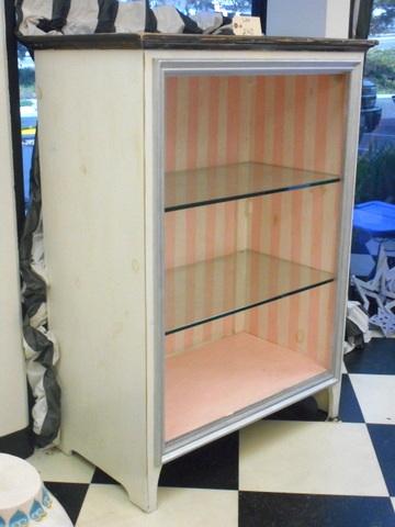 Lot 240 - Open Front + Lighted Wooden Cabinet with Glass Shelves