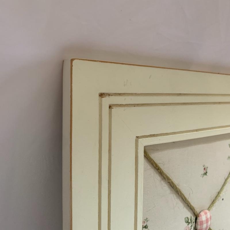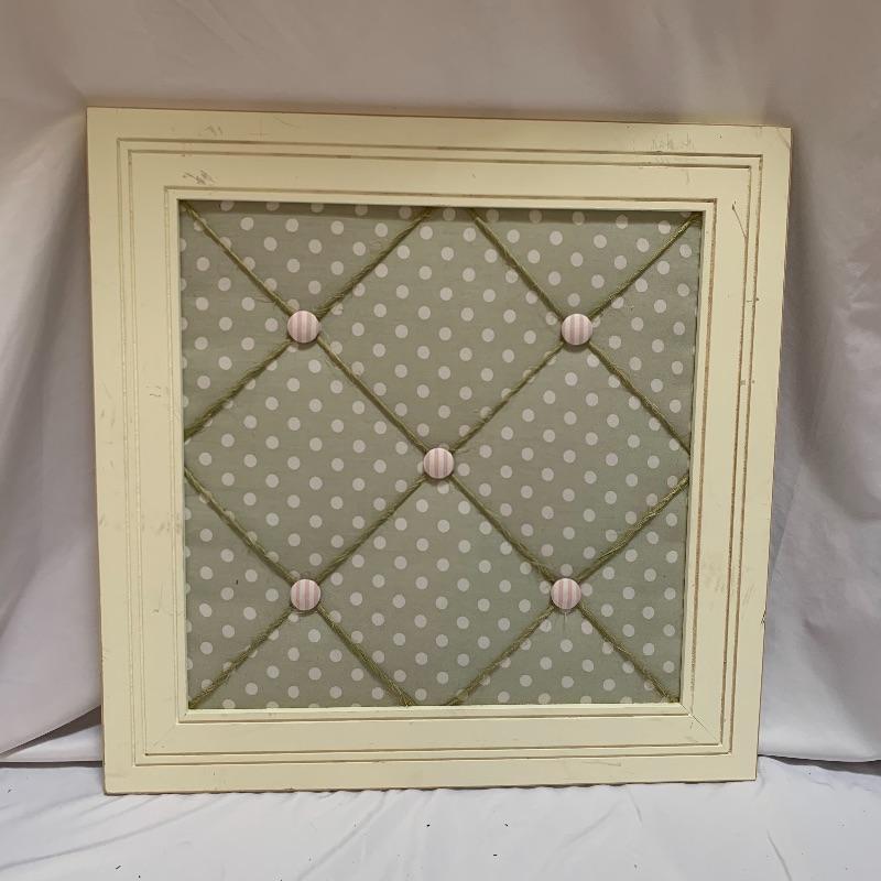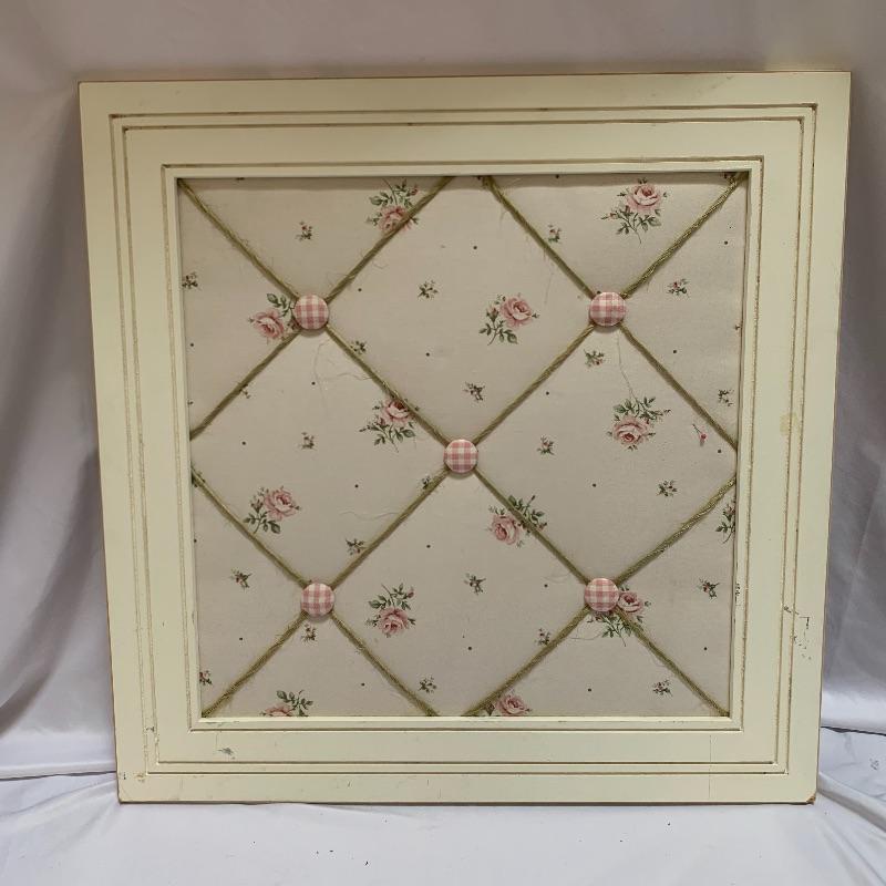 This lot includes a set of four matching throw pillows, two cloth and twine bulletin boards, and one Susan Farrington mixed media art piece. The pillow set includes two smaller pillows and two larger pillows. The smaller pillows measures about 17in x 17in and the larger pillows measures about 19in x 19in. The bulletin boards have some marks of wear on them (see photos). They measure about 24.5in x 24.5in. The art work by Farrington measures about 15.5in x 10in. Local pick up only.