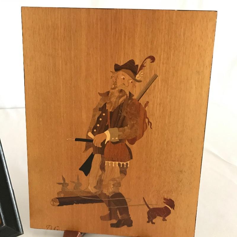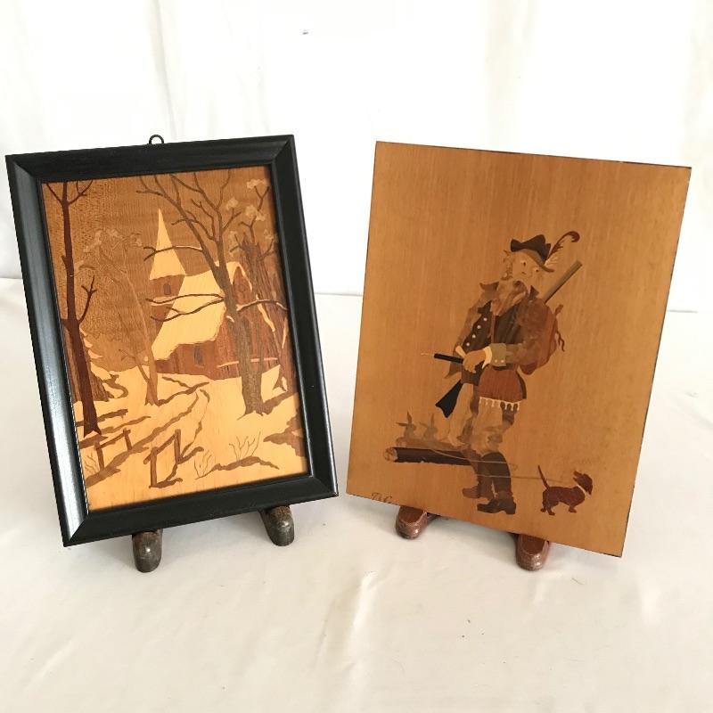 Two small marquetry creations to add stunning dimensional art to your walls! Firstly a piece “signed” BG and appears to be Buchschmid & Gretaux masterpiece measuring 7.75” x 10”. Next a lovely scene signed and dated 1931 W. Bader. This piece is in a black wooden frame measuring approximately 7.25” x 10.25”. Zoom in if possible on images to fully appreciate the craftsmanship that has gone into these pieces. Shipping available. Please call UPS with dimensions at 828-252-6930 for a shipping quote prior to bidding.