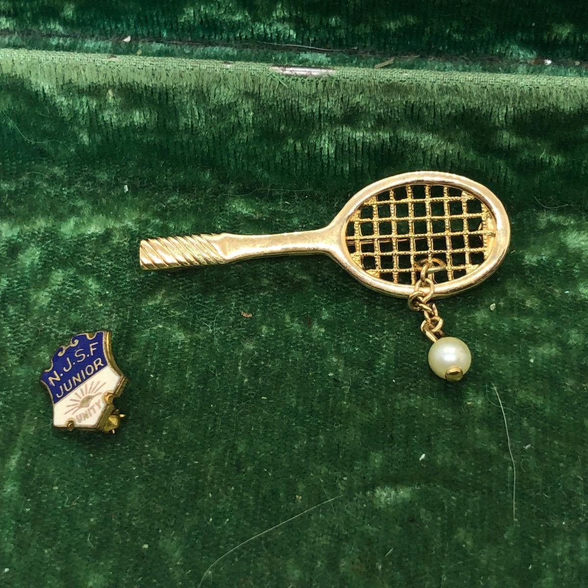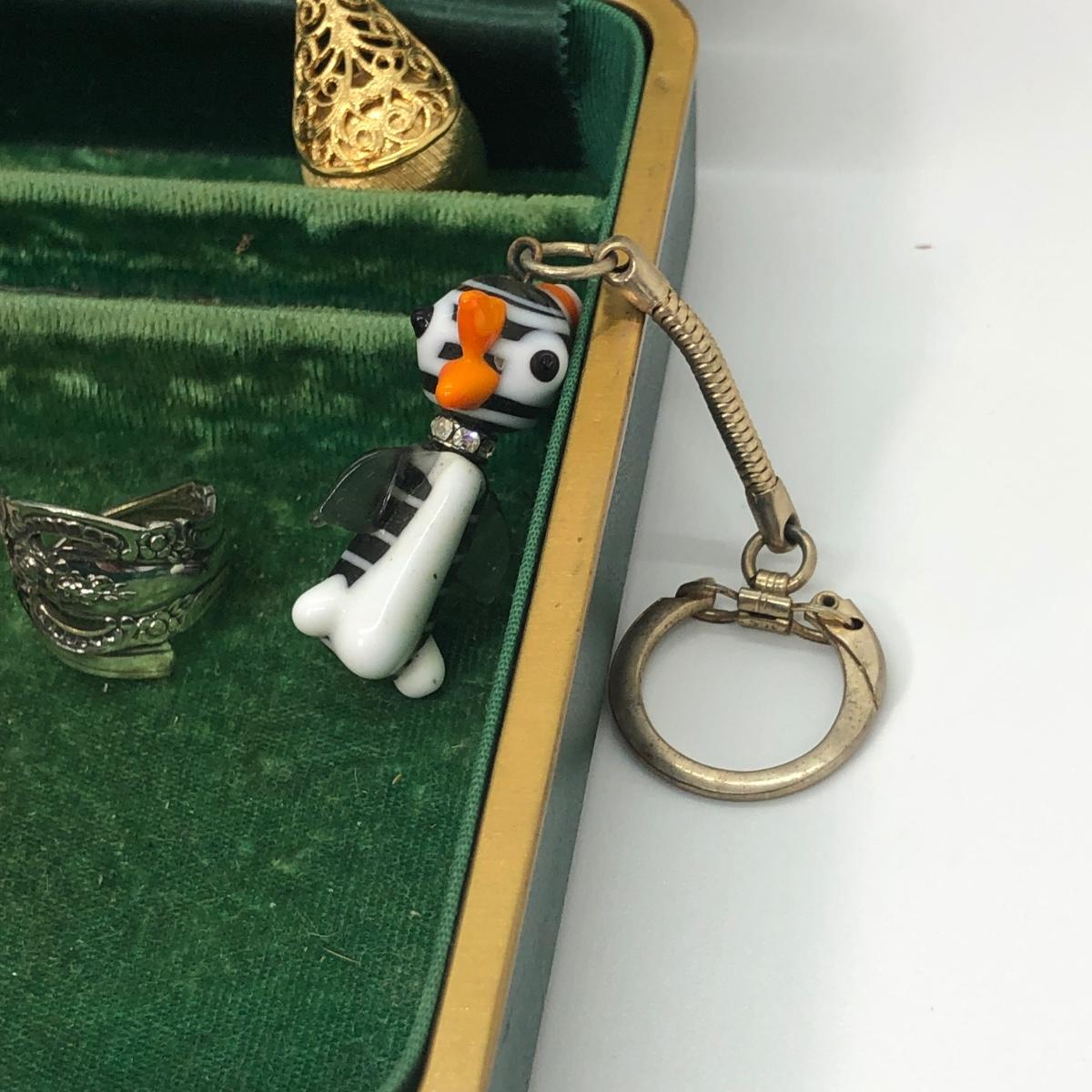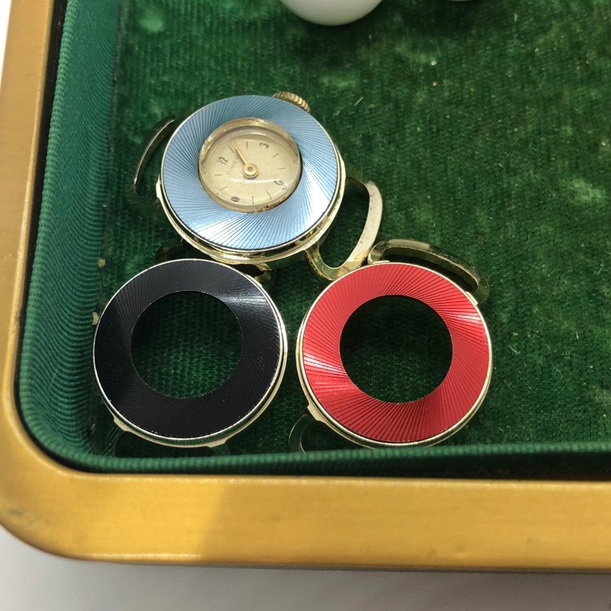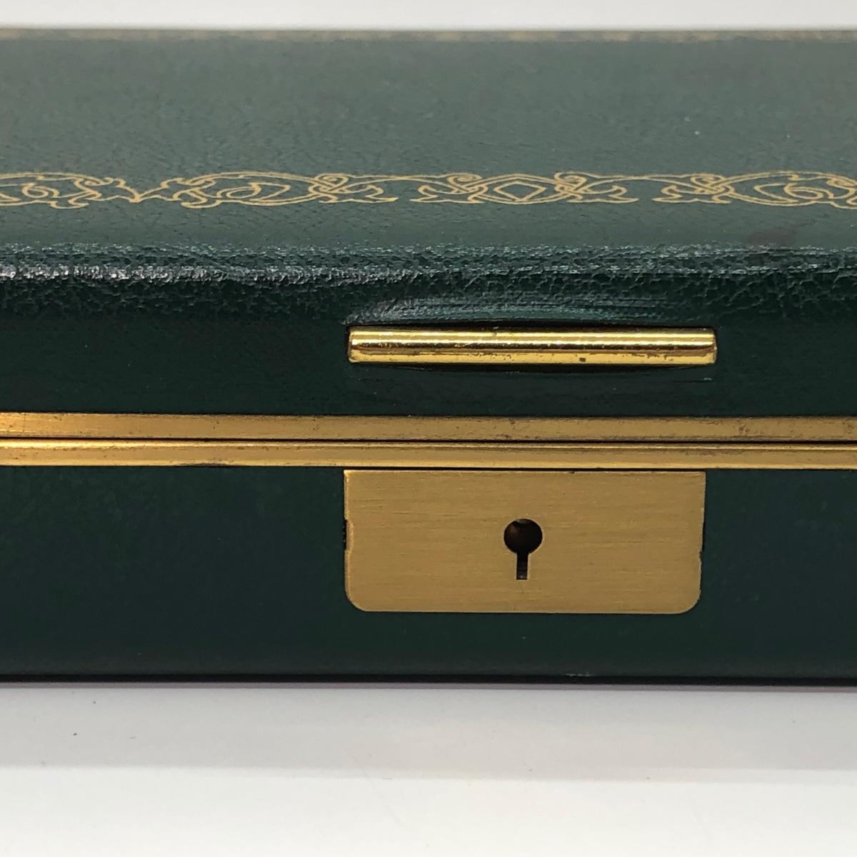 LOT 240M: Vintage Green Jewelry Box w/ Monet Necklace, Coro Bracelet, Avon Tennis Pin, Timex Watch Faces & More