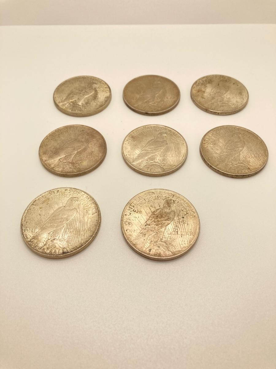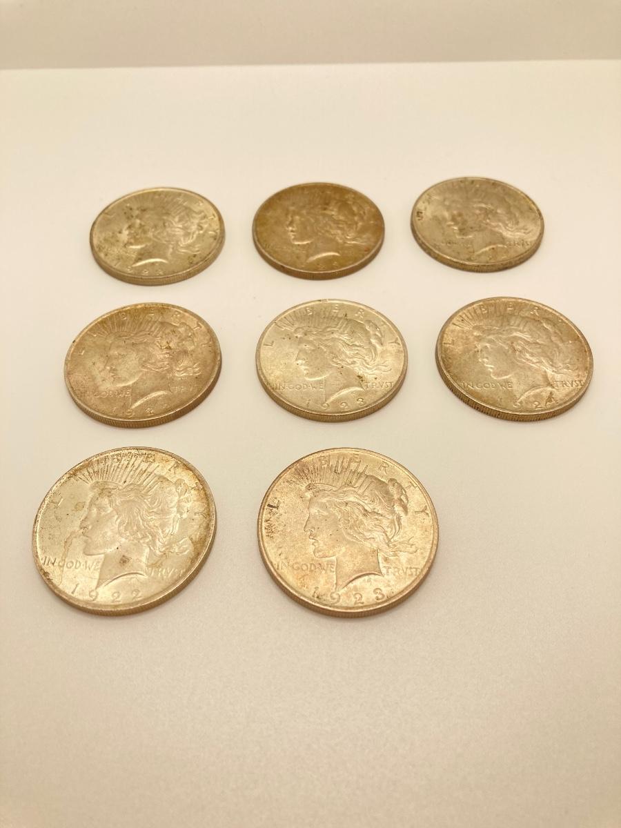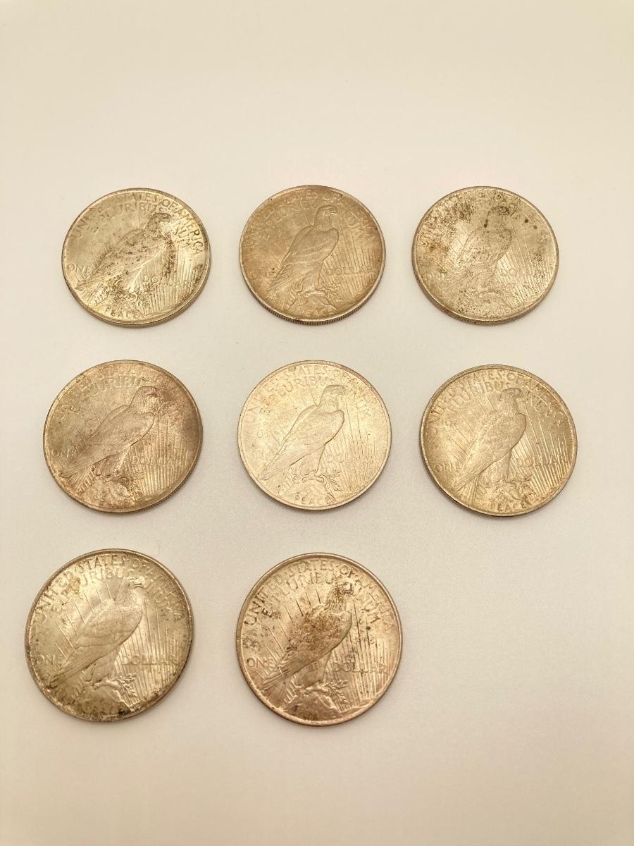 Lot 241: Eight Peace Silver Dollar Coins - 1922 (3), 1923 (3) and 1924 (2)