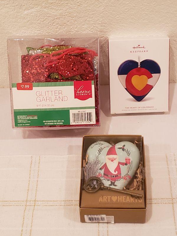 Lot 241: New Hallmark Colorado Christmas Ornament, Santa Keepsake, and Merry Christmas Garland