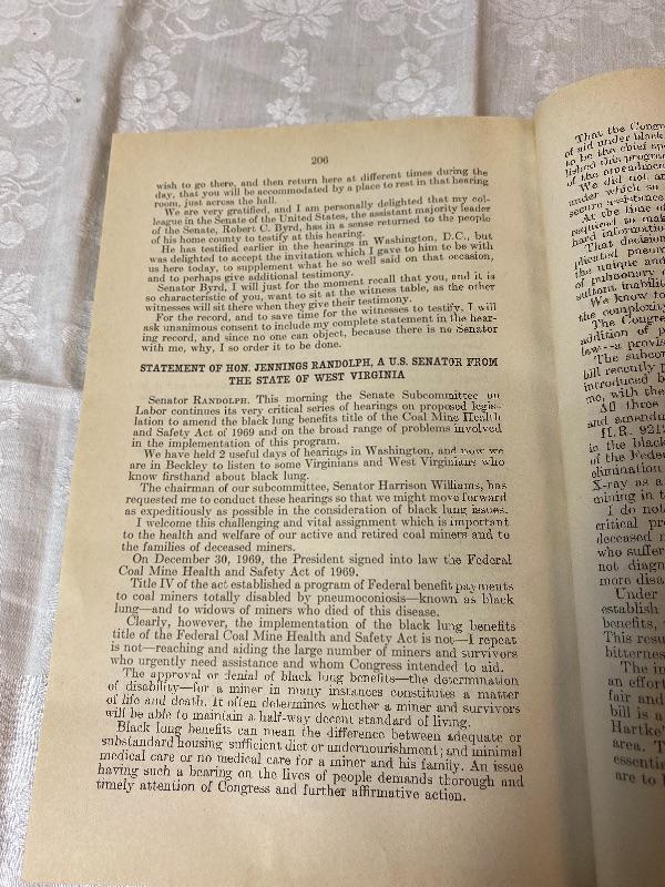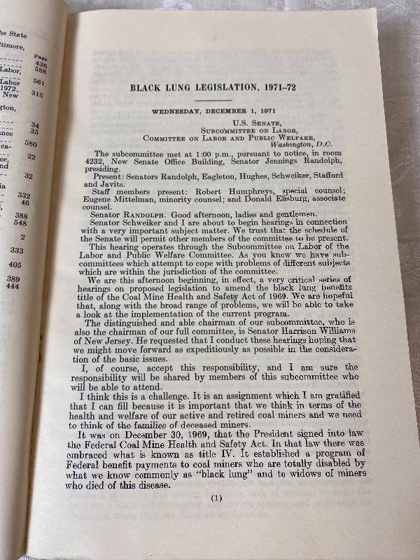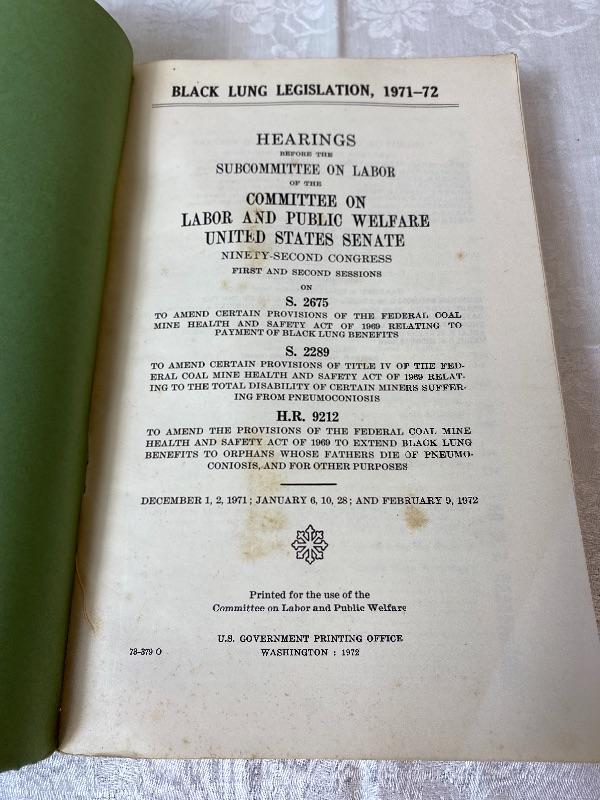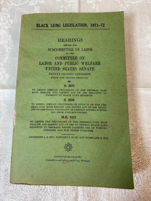 Lot 241 S Vintage Black Lung Legislation Hearings 1971 - 72