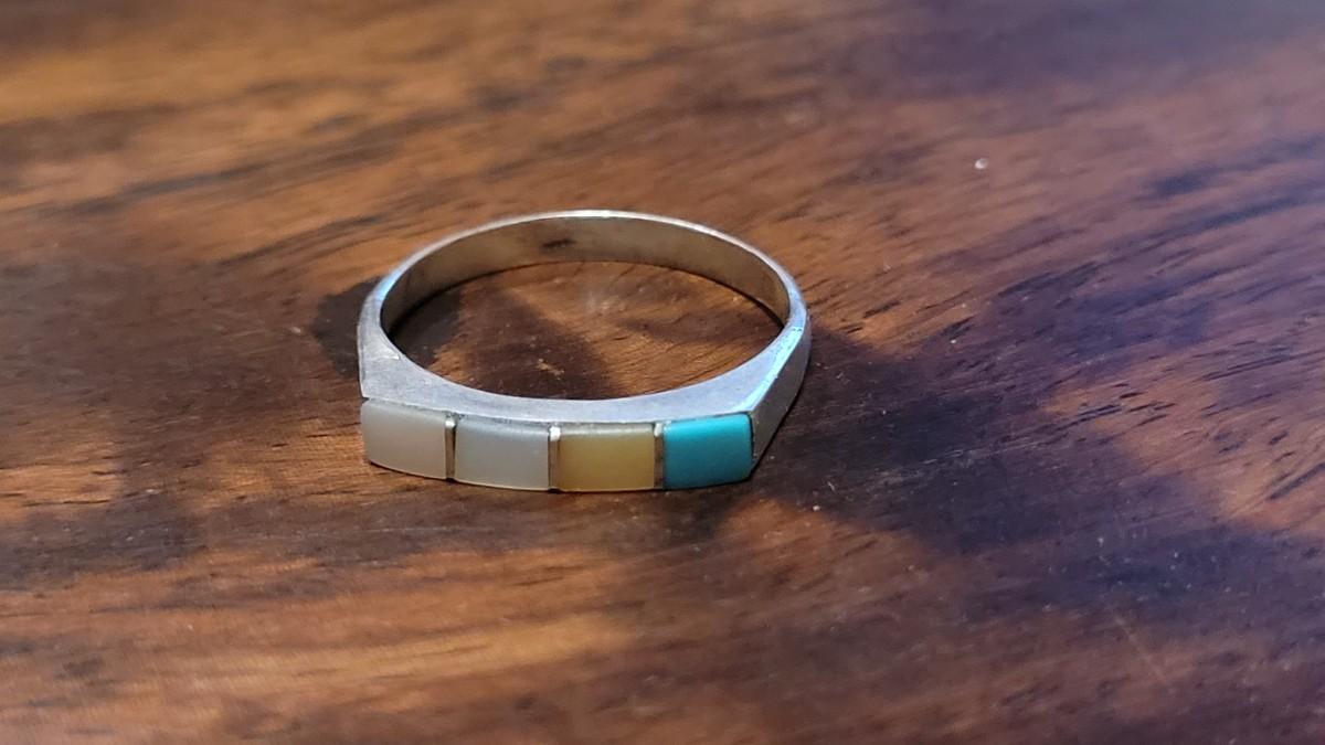 Lot 241: Sterling Turquois and Mother of Pearl Ring