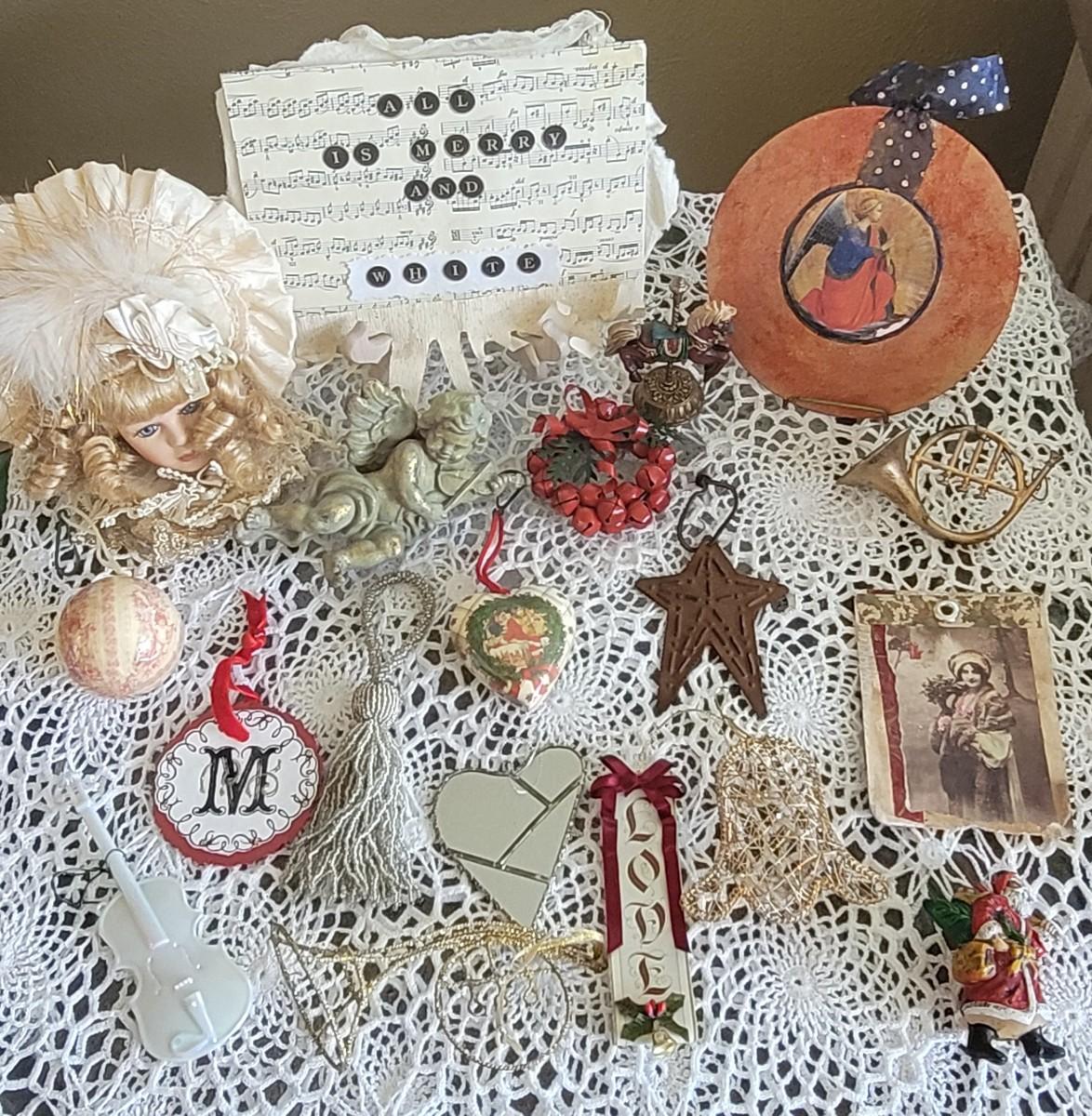 Lot 241: Vintage Christmas Ornaments and Hanging Sign