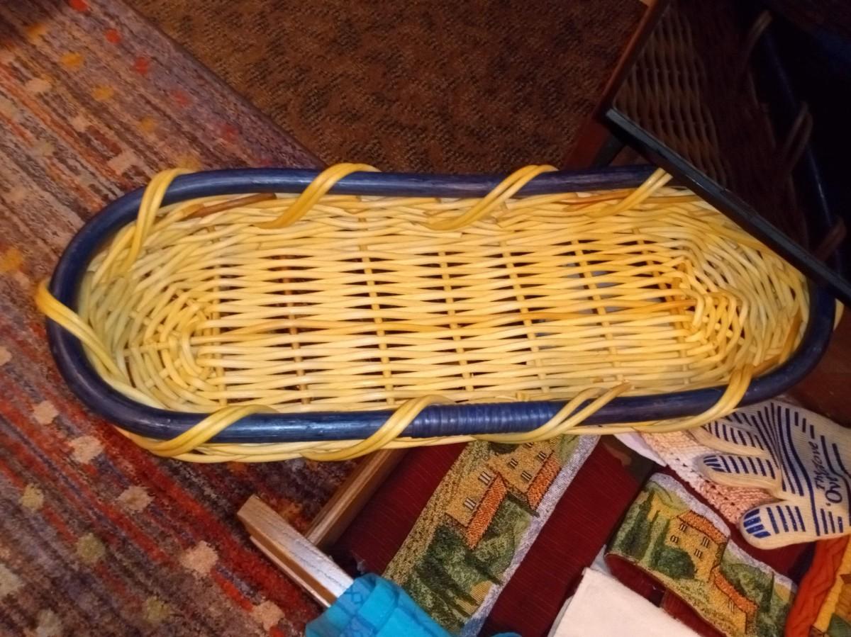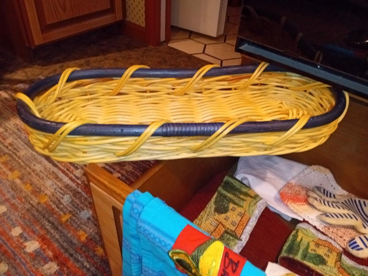 LOT 241  DISH TOWELS, APRON, OVEN MITT, HOT PAD AND WICKER BASKET