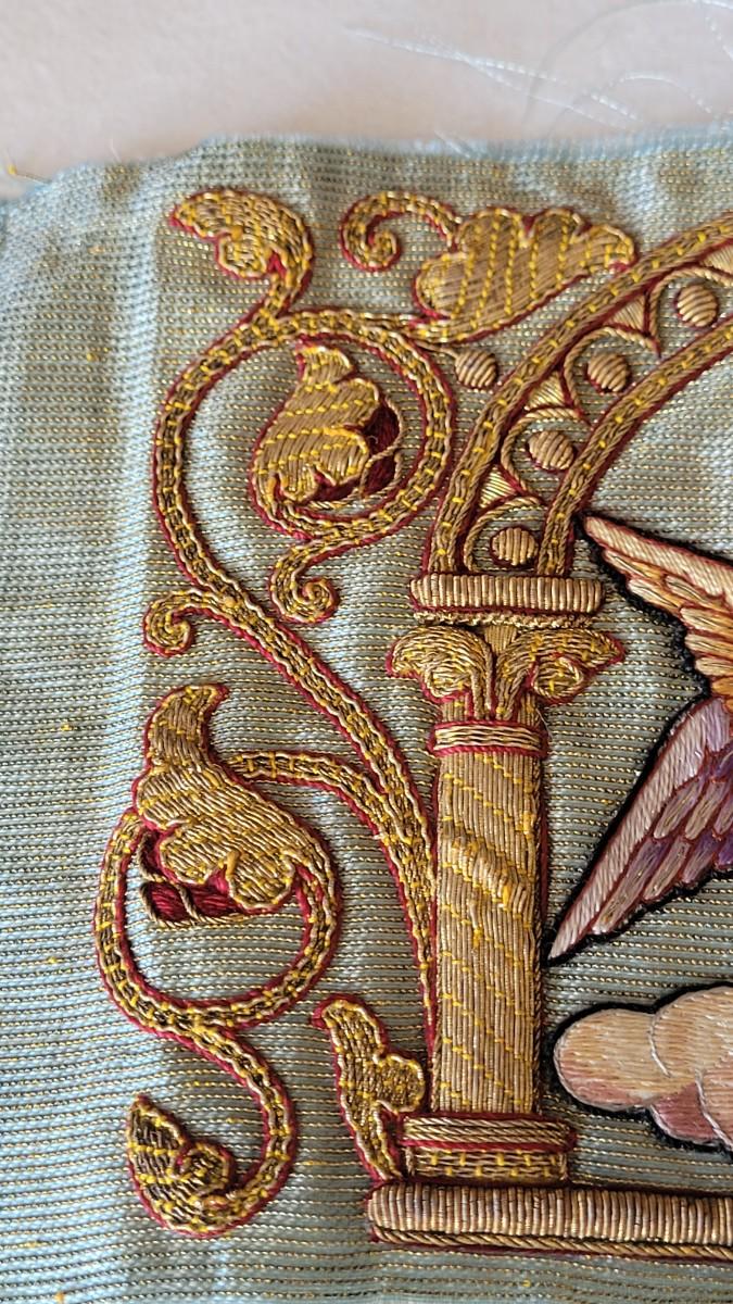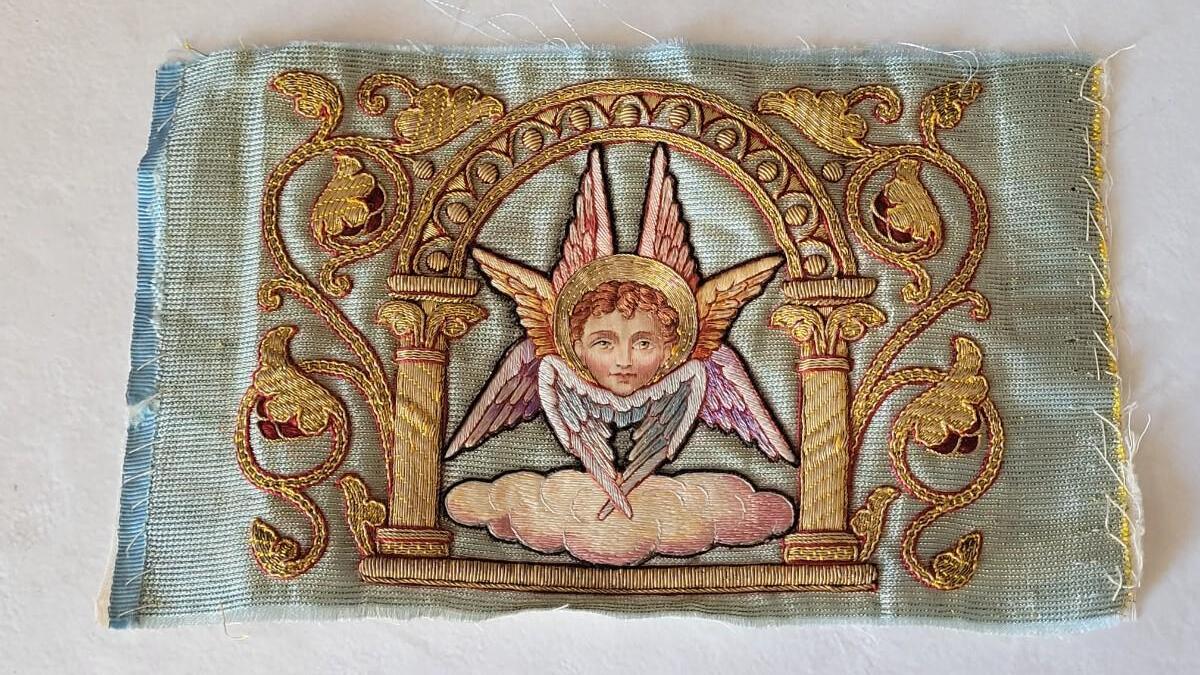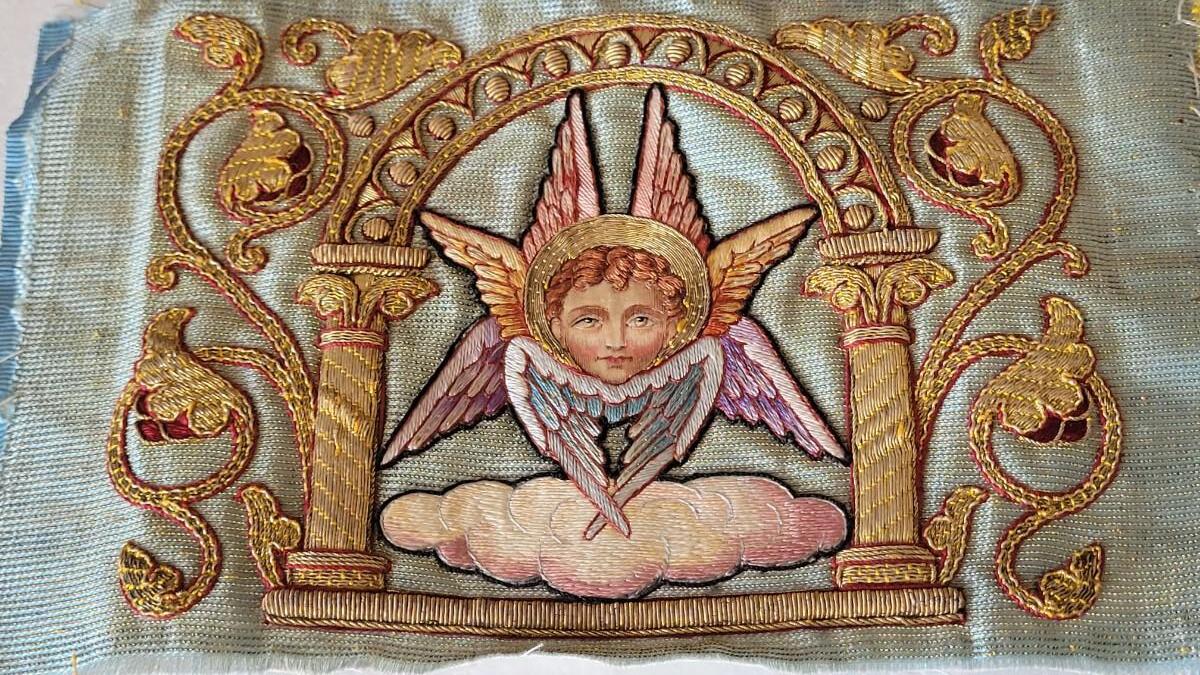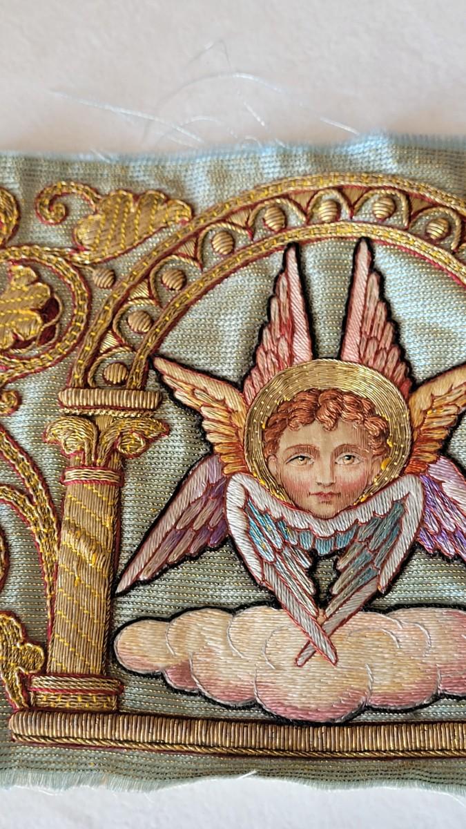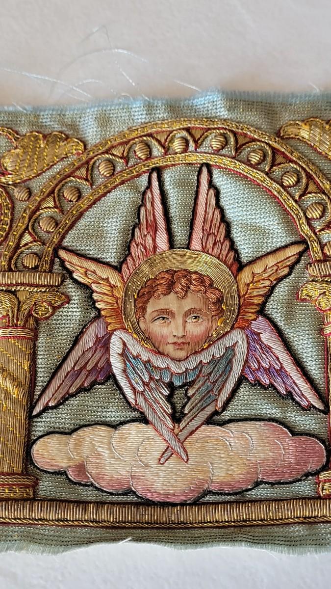 Lot 241: Antique Needlepoint Seraph Angel Piece
