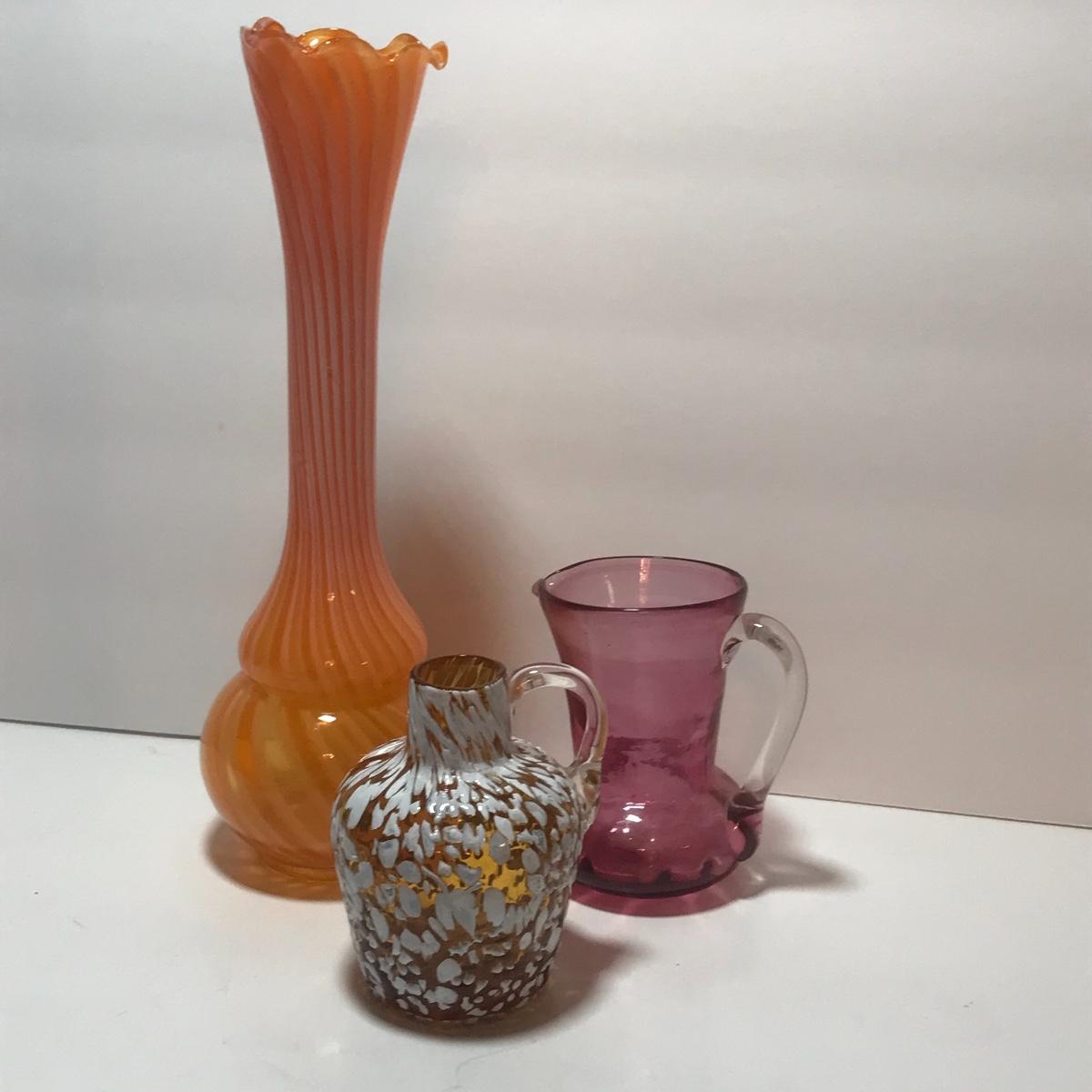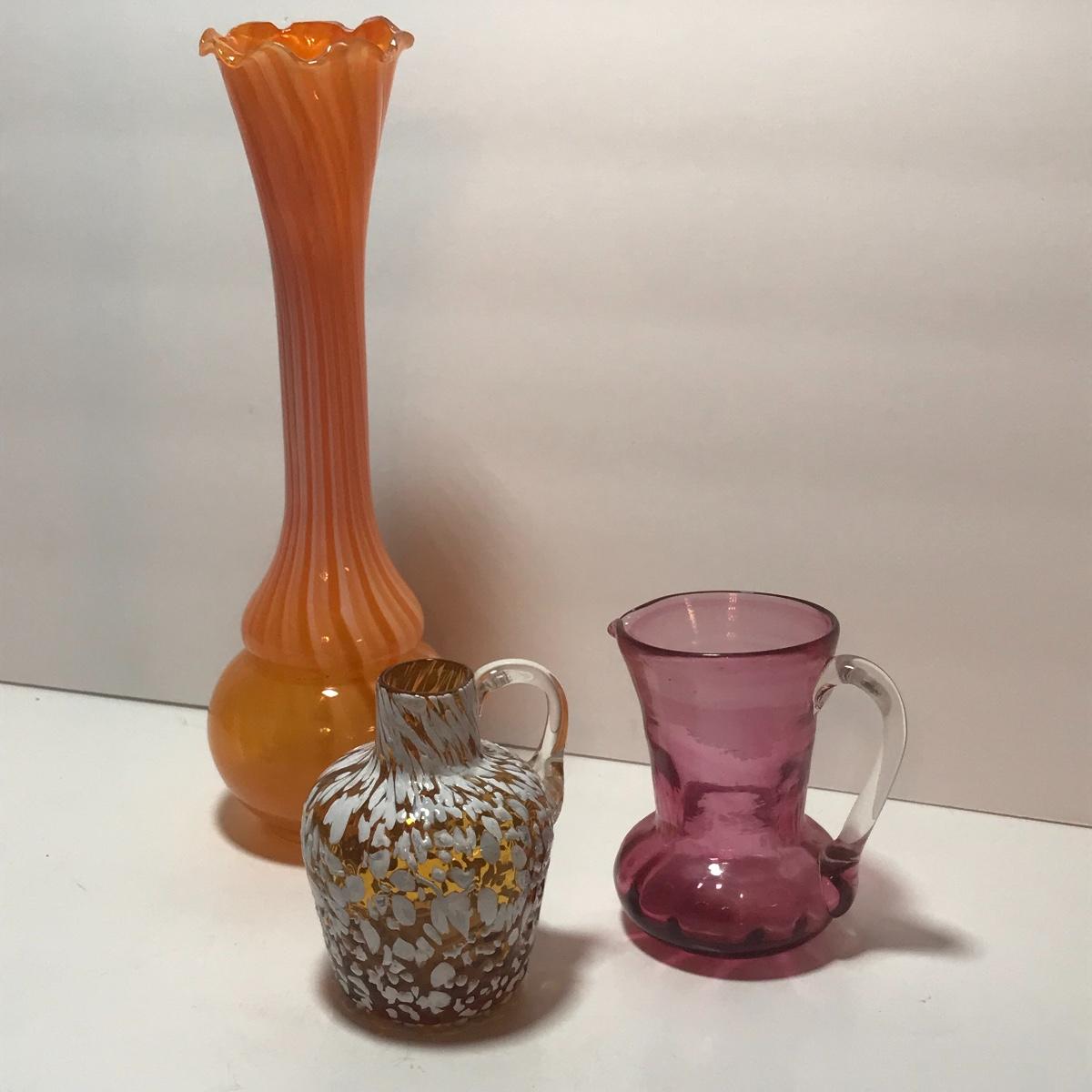 Hobnail basket, swirled vases, blue and purple pitchers, wonderful blue ashtray, and a textured jug. Please see all pictures as they are the best representation of the items. The pictures show condition, measurements if taken, and what is included in the lot. Due to the large amount that we photograph and the time frame, we are not always able to take measurements. All items unless noted, are pre-owned and have been used. If you purchased furniture, you must bring help. We do not allow one person to carry large furniture out on their own. Bring help, tools and a truck for the safety of our client’s homes, and your personal safety. Company policy. Thank you.