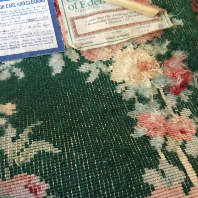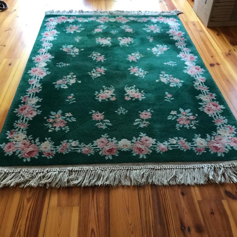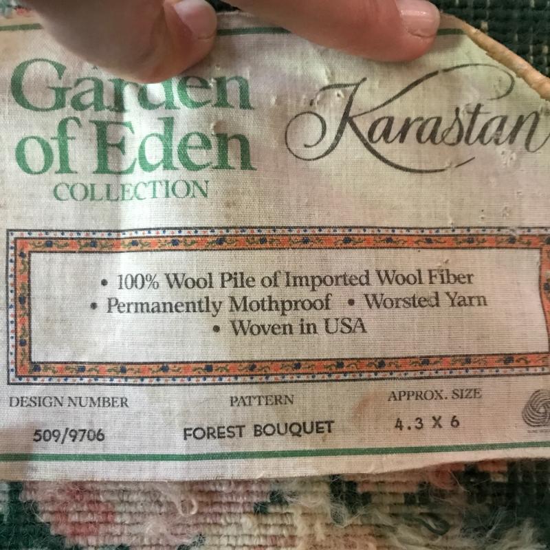 100% Wool Pile Rug in Forest Bouquet Pattern. Size is 4’ x 6’. See photos for manufacturer details. Shipping or local pick up in Asheville. Likely a bit costly to ship due to size. Please check with your local UPS store for estimate prior to shipping.