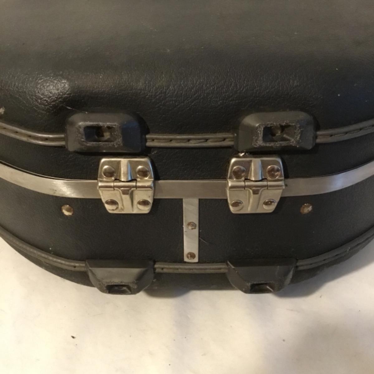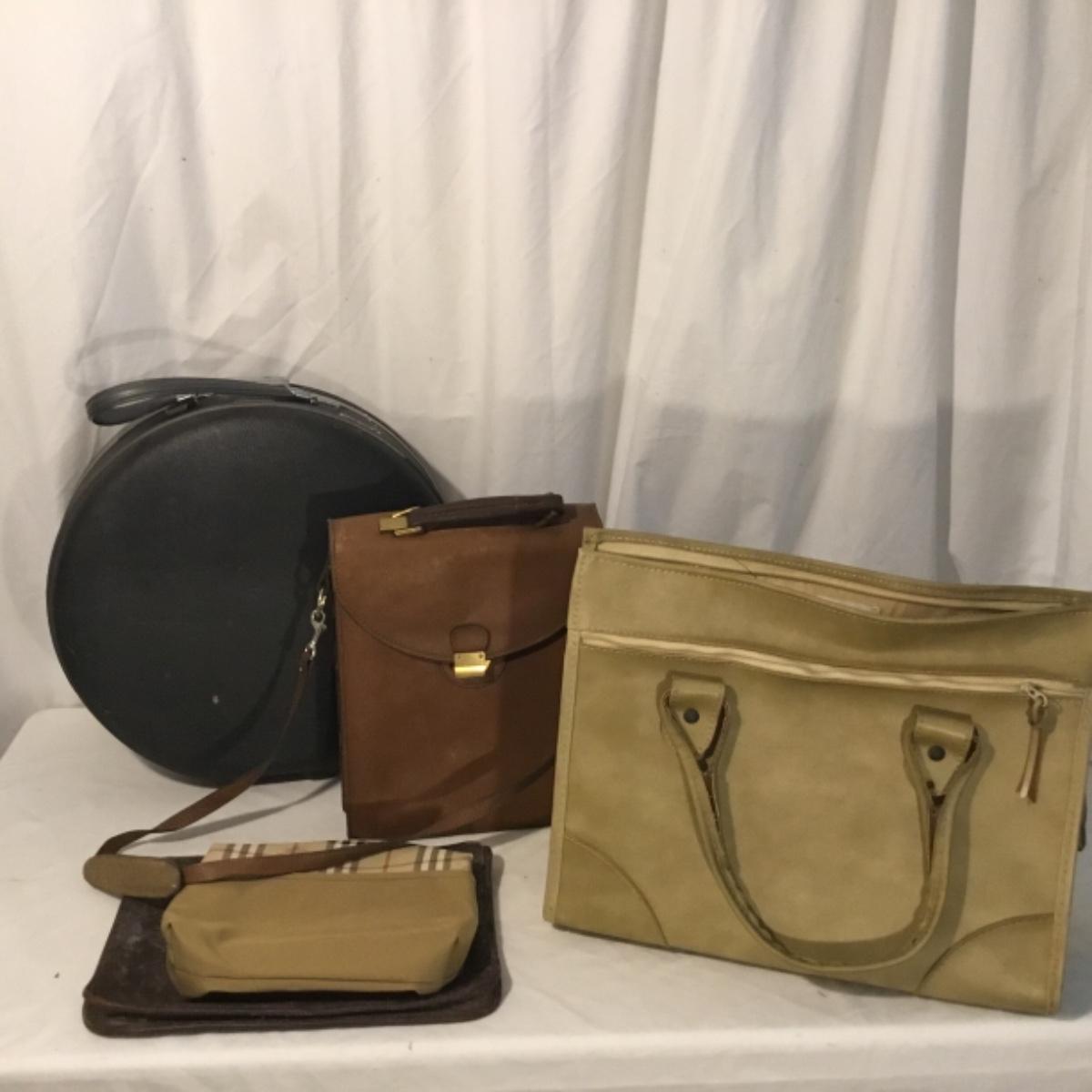 Lot includes a tan Hartmann luggage bag that measures, 6"x14"x17". This bag has multiple compartments and working zippers, however the bag is stiff due to use and aging. Round ECT American Traveler luggage has an all black hard shell case that has a diameter of 17". Lot also includes Schlesinger Brothers California leather bag (2"x11"x15" without the strap included in these measurements.), as well as two clutches. See photos for details. Shipping is available!