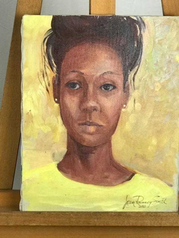 Jean Ranney Smith signed original oil painting on canvas “Lady In Yellow” measures 14”x11”