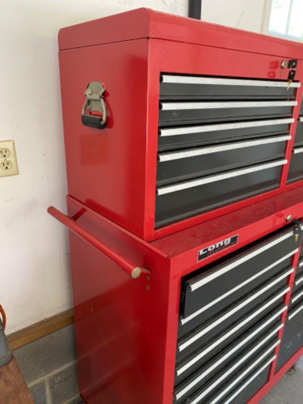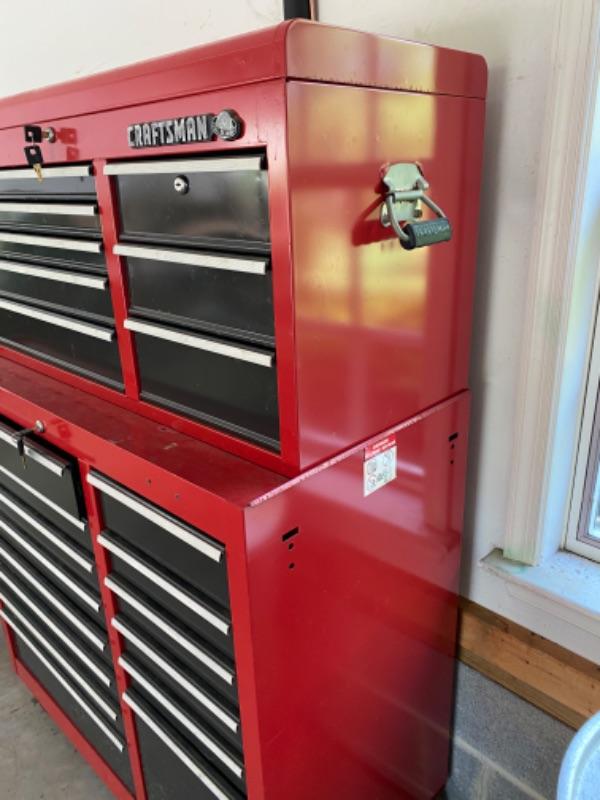 Large Craftsman tool chest. Top section 8 drawers lid lifts for storage 40.5” x 20” x 16” deep