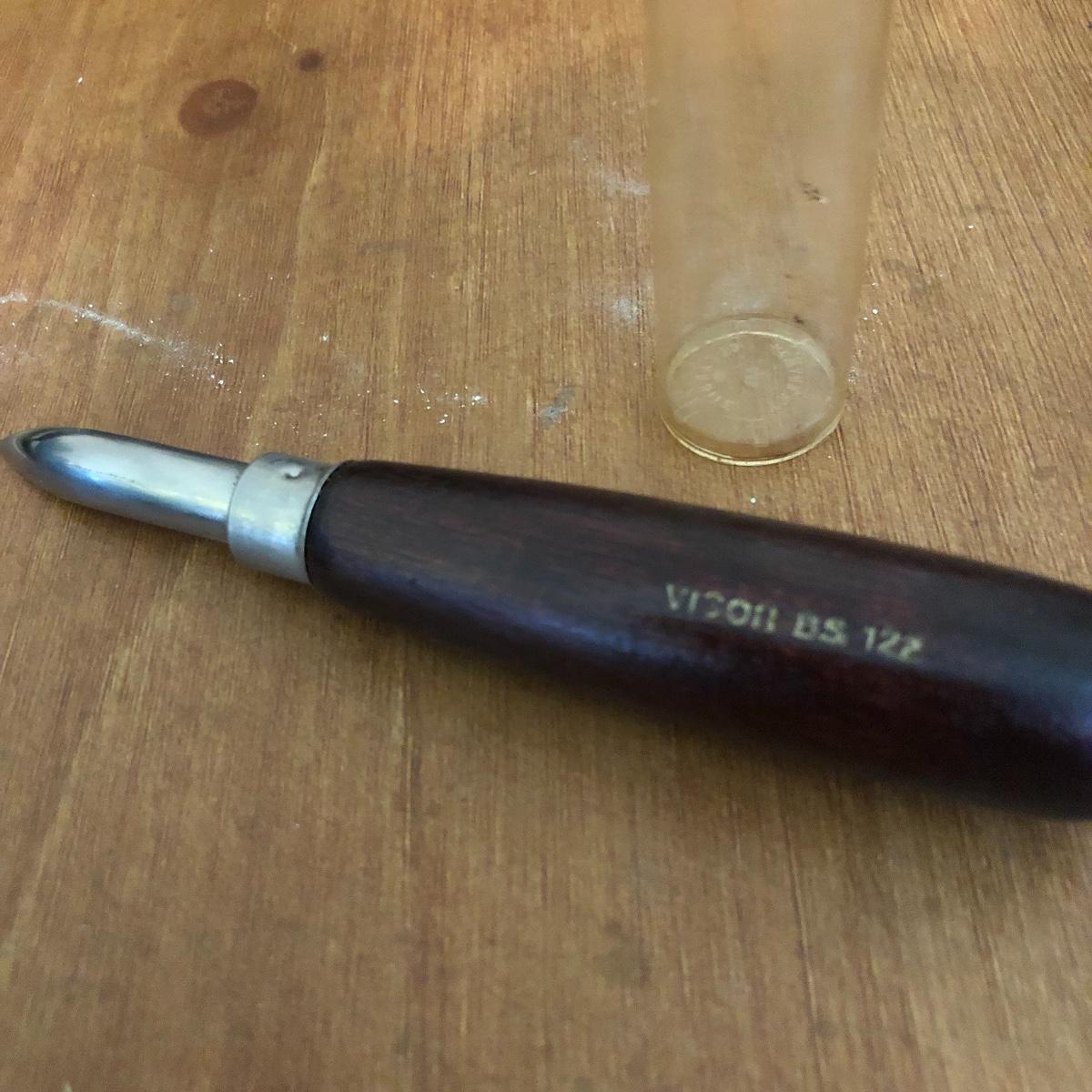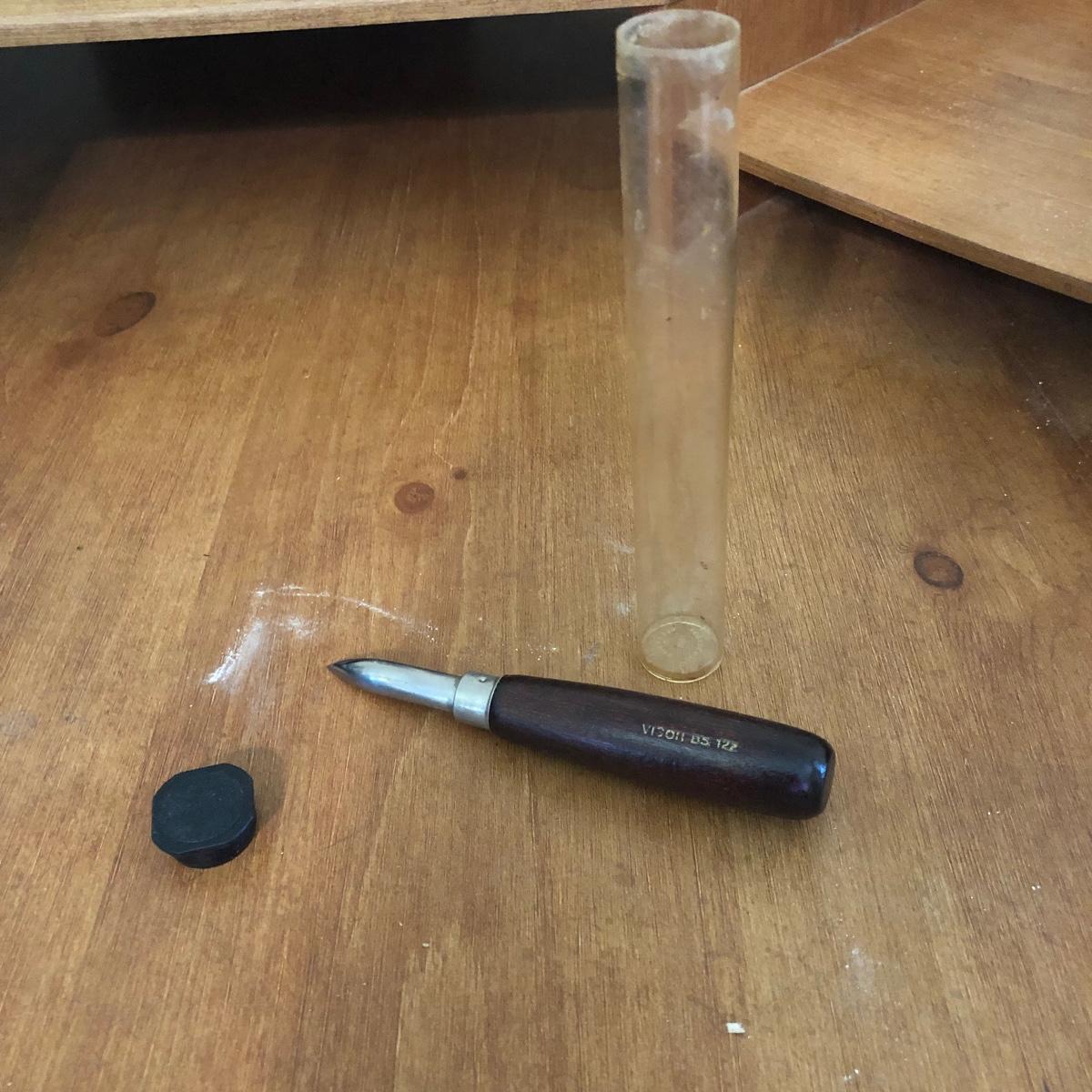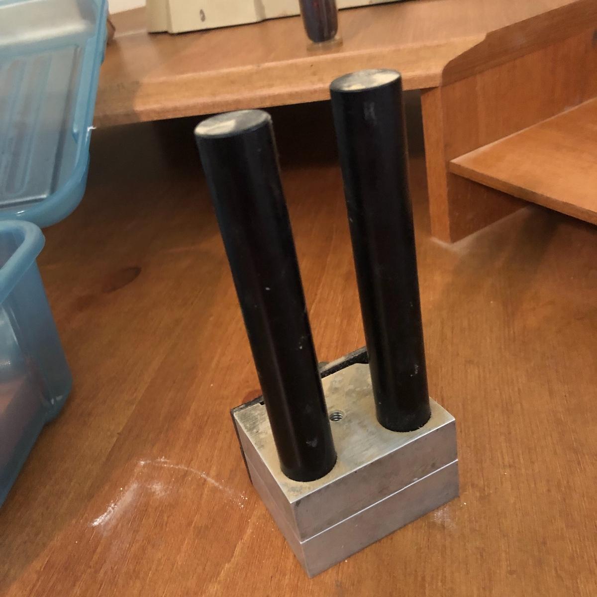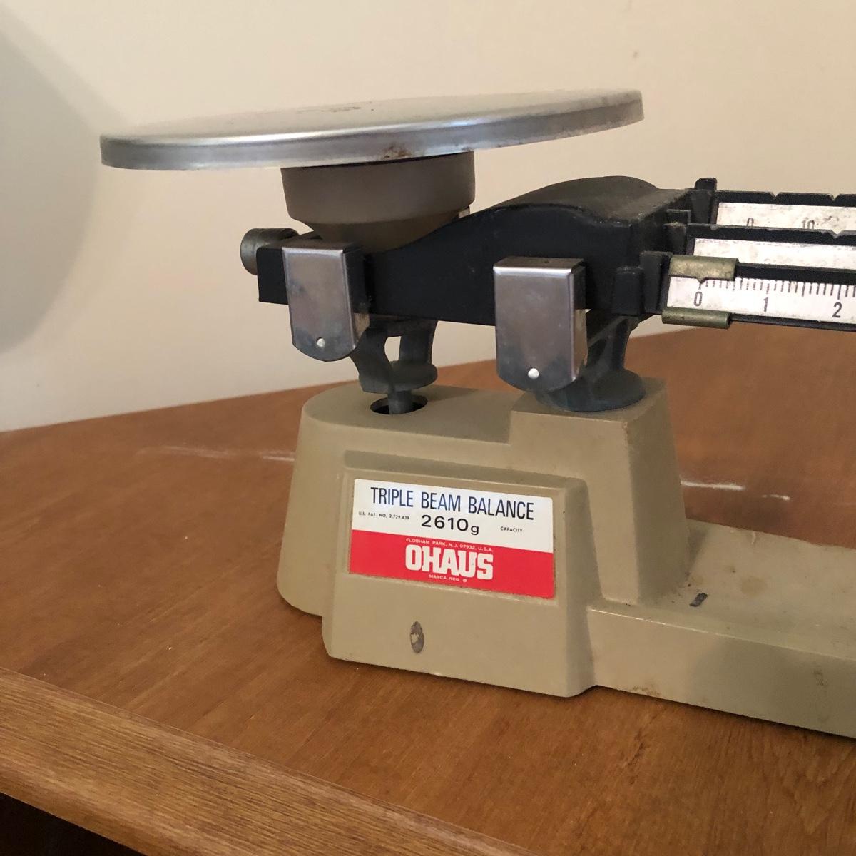 This lot includes smithing tools, a jeweler’s saw, saw blades, a burnisher, a OHAUS triple beam balance scale and more. The plastic container pictured is included with the lot.