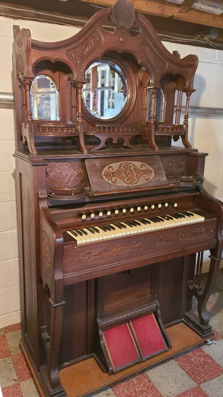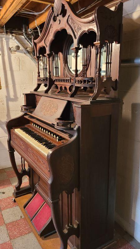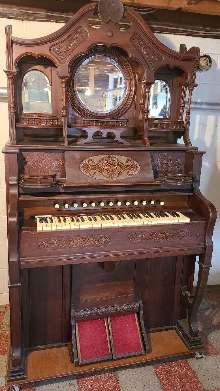 This is stunning. Very ornate, most likely early 1890s Please see all pictures of the amazing condition. It is tested and working. You will need to bring help to move as it is in the basement. Please see all pictures for content of the lot, condition of the lot, and measurements if taken. Pictures are the best representation of the items listed and items are untested unless indicated in description. Thank you for looking and have fun bidding! 45 x 23x 77 inches