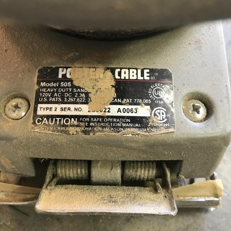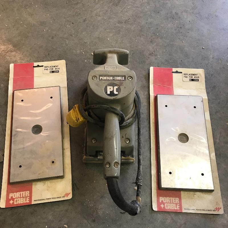 Porter Cable 505 Sander with two extra pads. Operational but cord is fraying at connection. See pix. Shipping available.