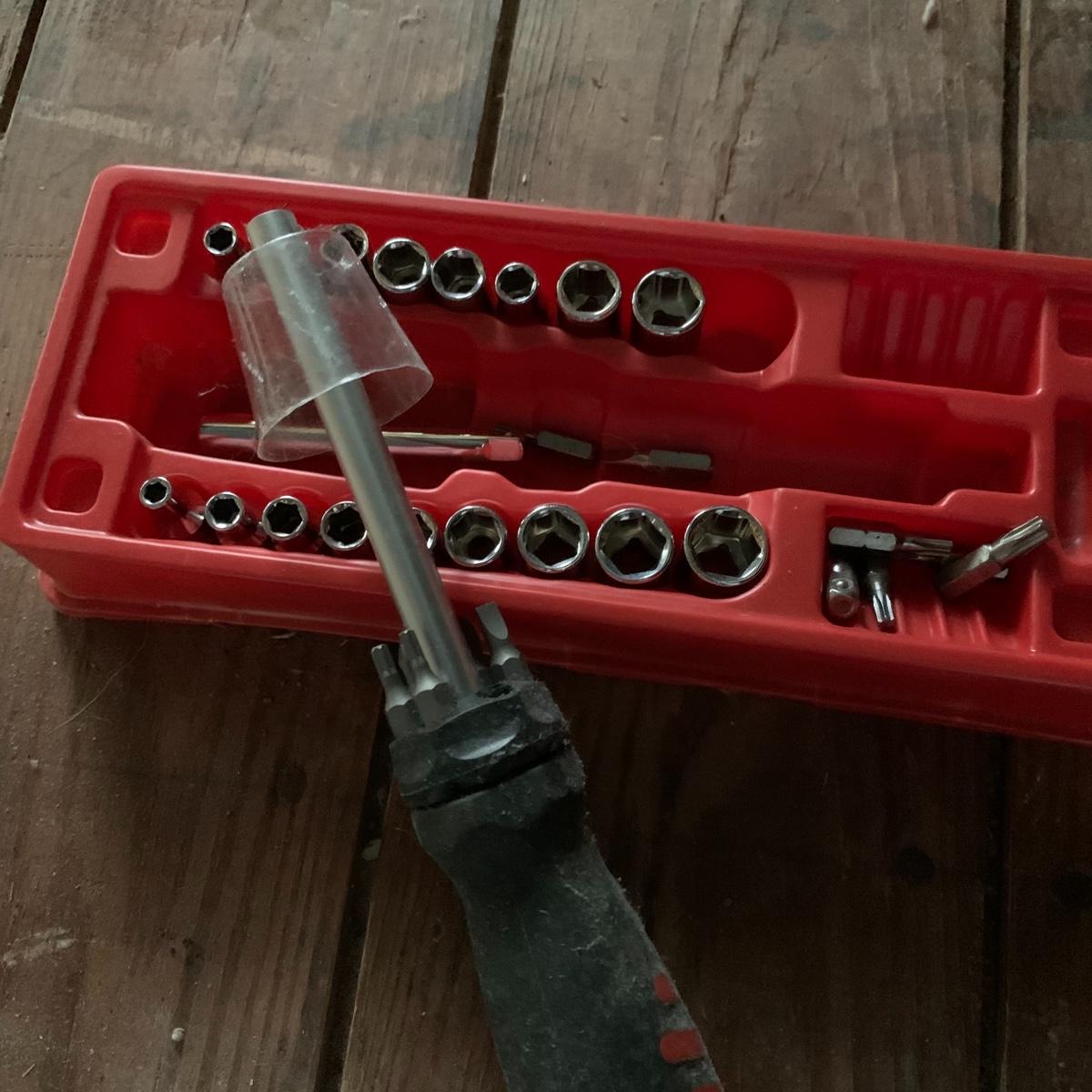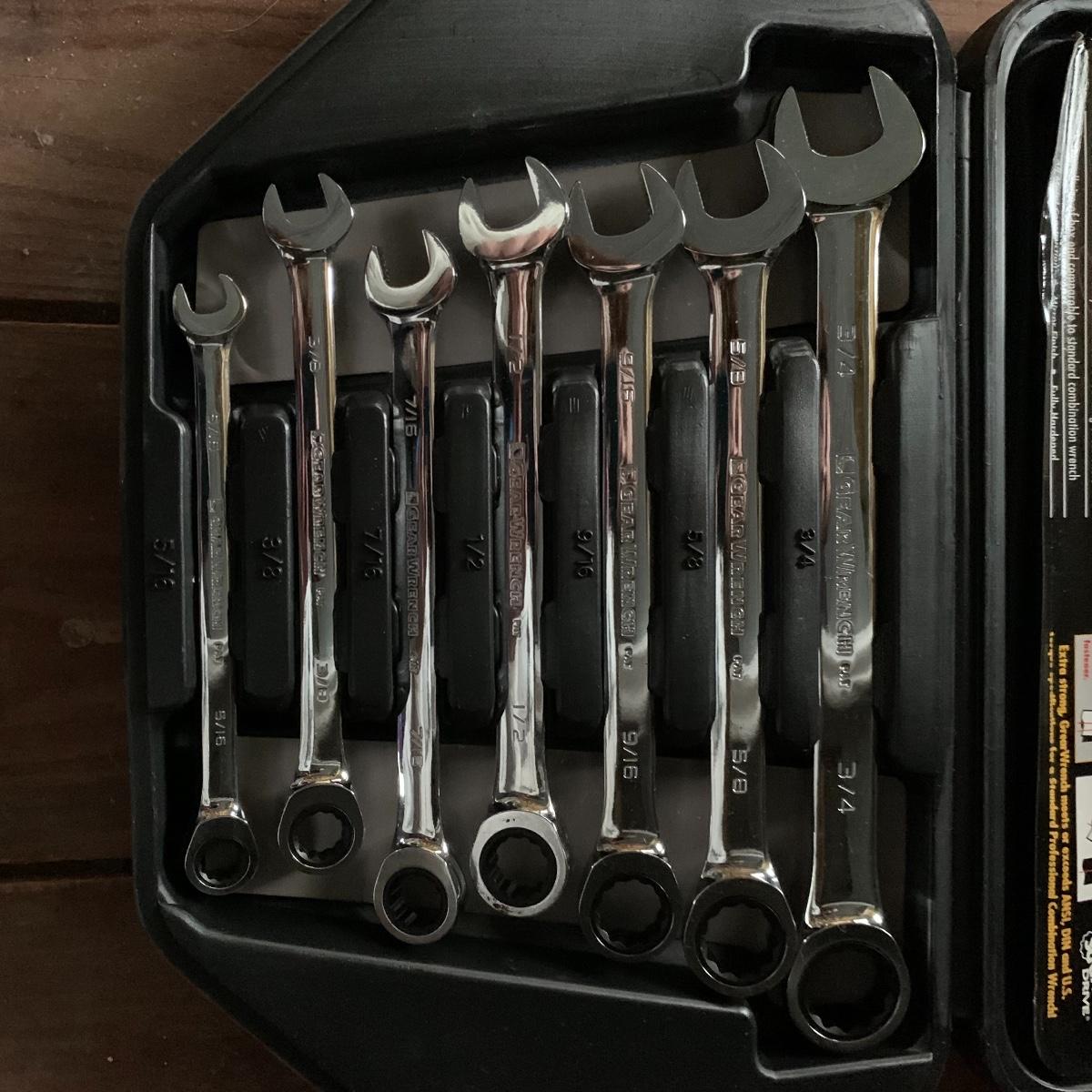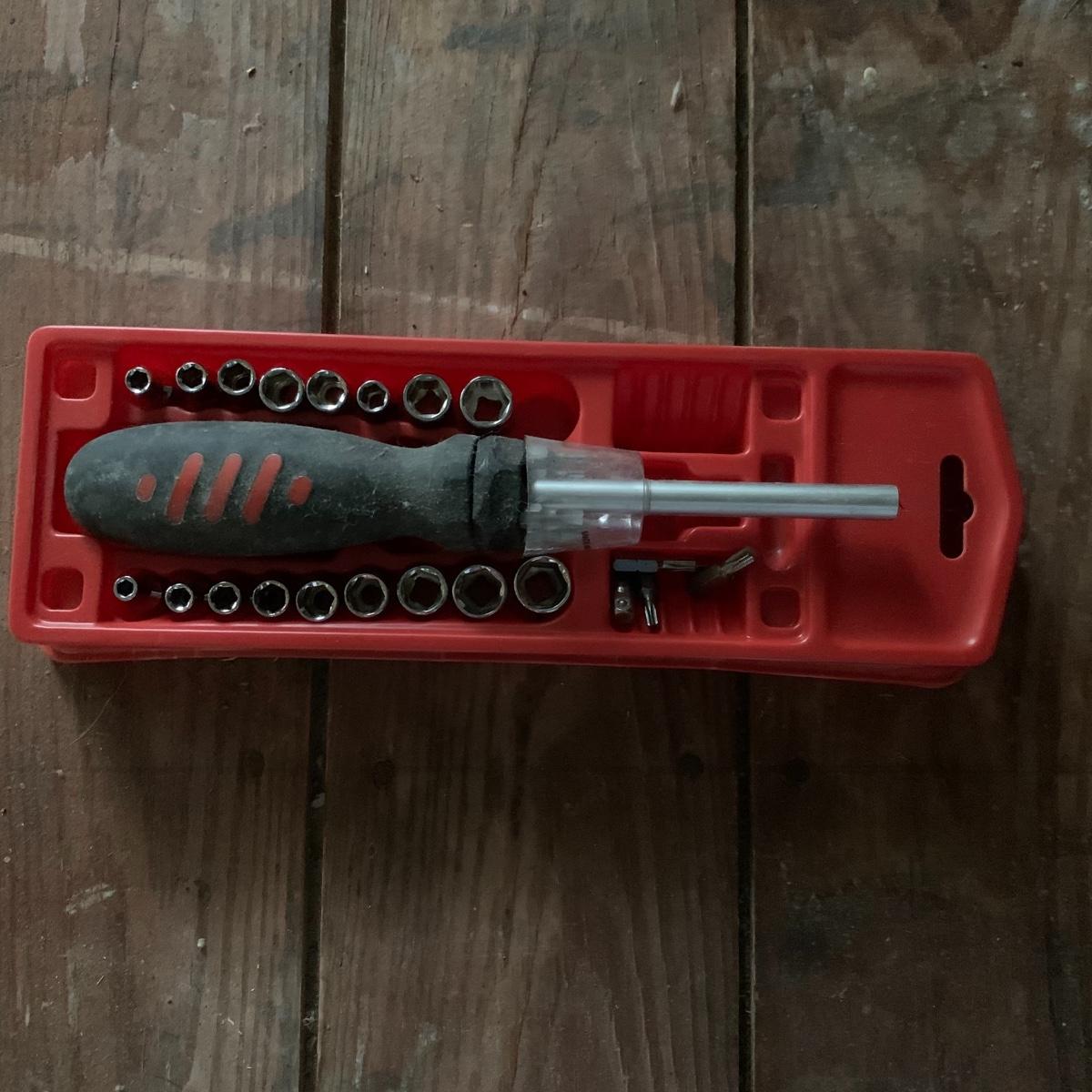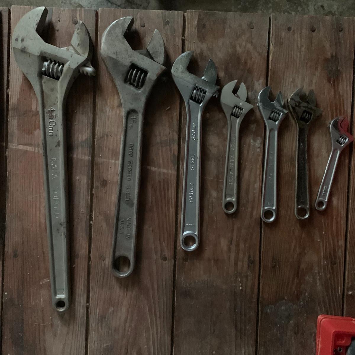 This lot includes many tools. There are lots of different metal files and wrenches. There are a few sets of ratchet wrenches (GearWrench and Helix brands). You’ll also find a set of Craftsman sockets and Allen wrenches, as well as various other sockets. There are two vises: a Colombian 235 and a Fuller 3.5”. There are also a variety of miscellaneous tools found in a nice red metal toolbox. Local pickup only.