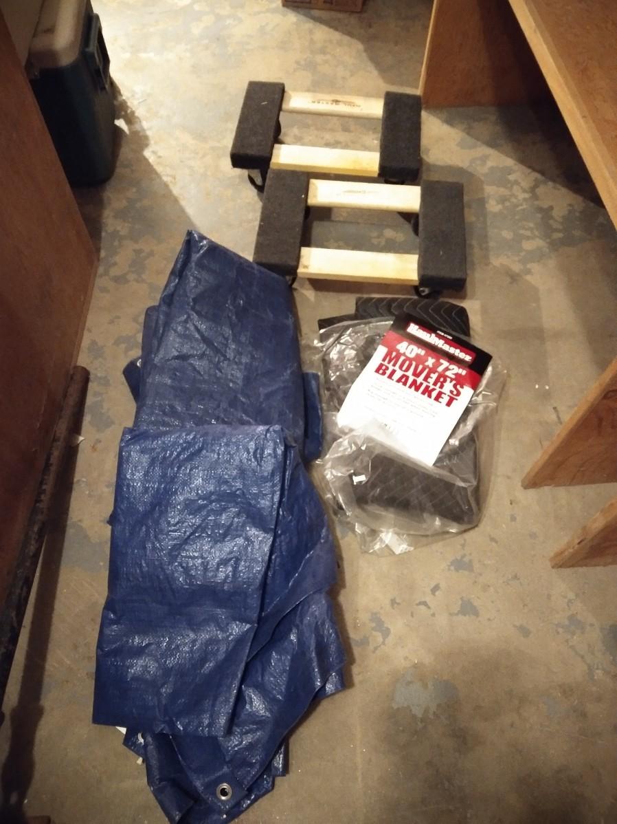 TWO HAUL MASTER 1000 LB CAPACITY MOVER'S DOLLIES, MOVING BLANKET, AND TARPS