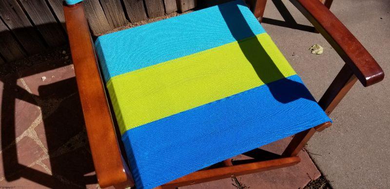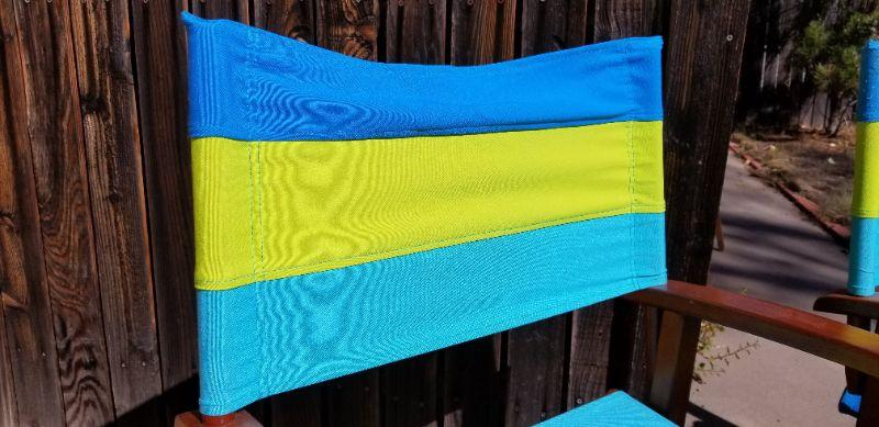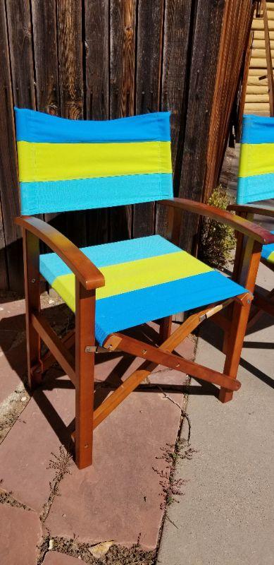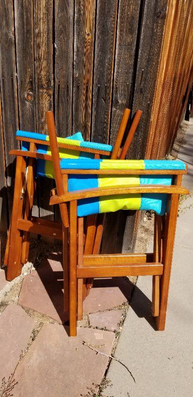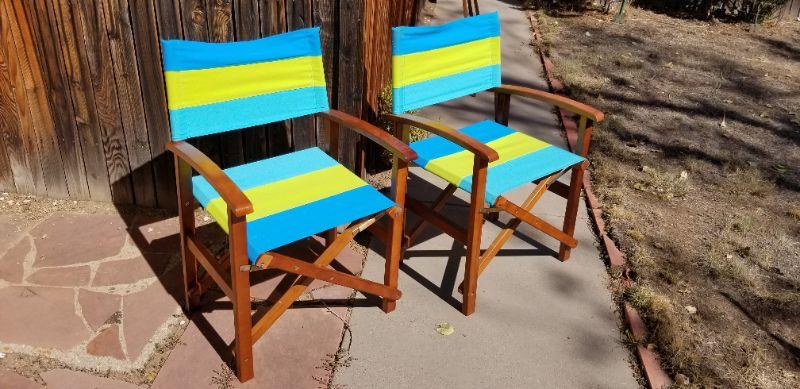 Lot 2-413: Pair of Folding Wood Frame Colorful Directors Chairs 34" Tall x 20.5" Wide