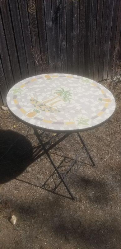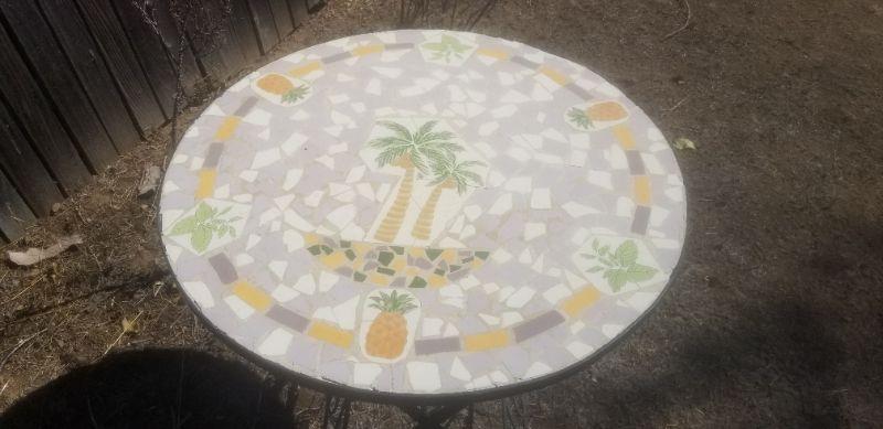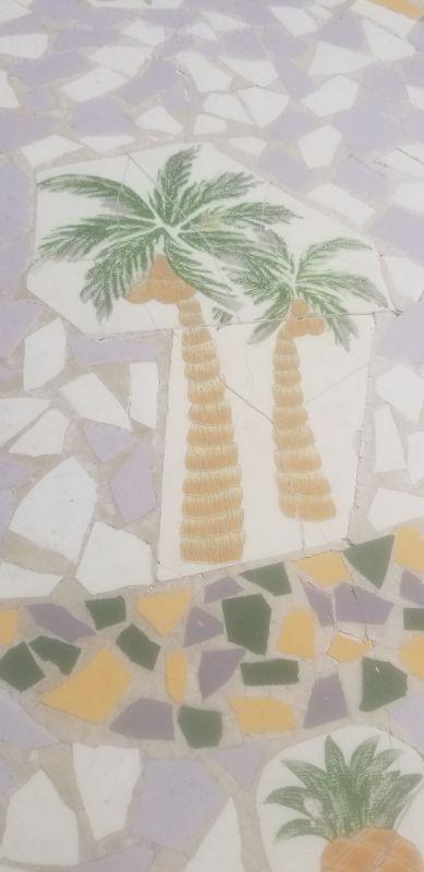 Lot 2-415: Vintage Heavy Iron Base Mosaic Pineapple Hospitality Tile Top Table 27.5" Wide x 28.5" Tall