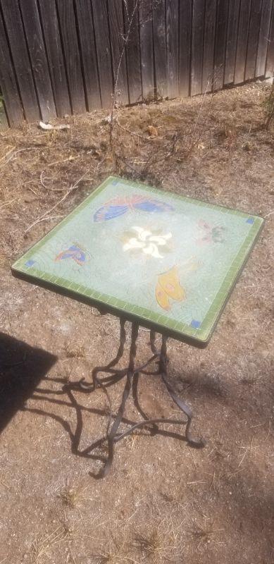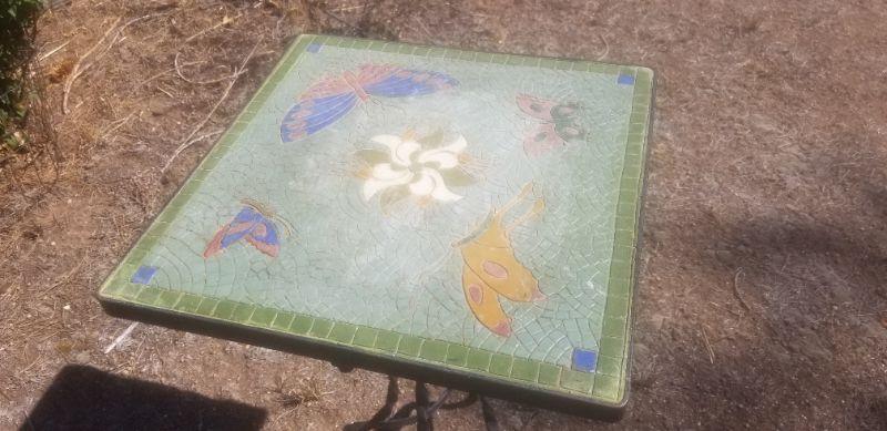 Lot 2-419: Vintage Tile Top Metal Base Table 14" x 14" x 23.5" Tall