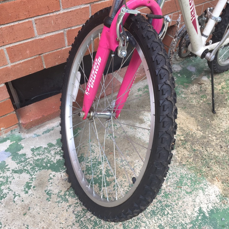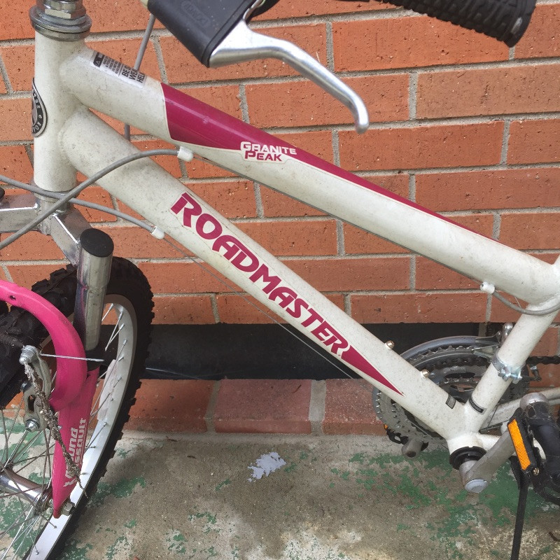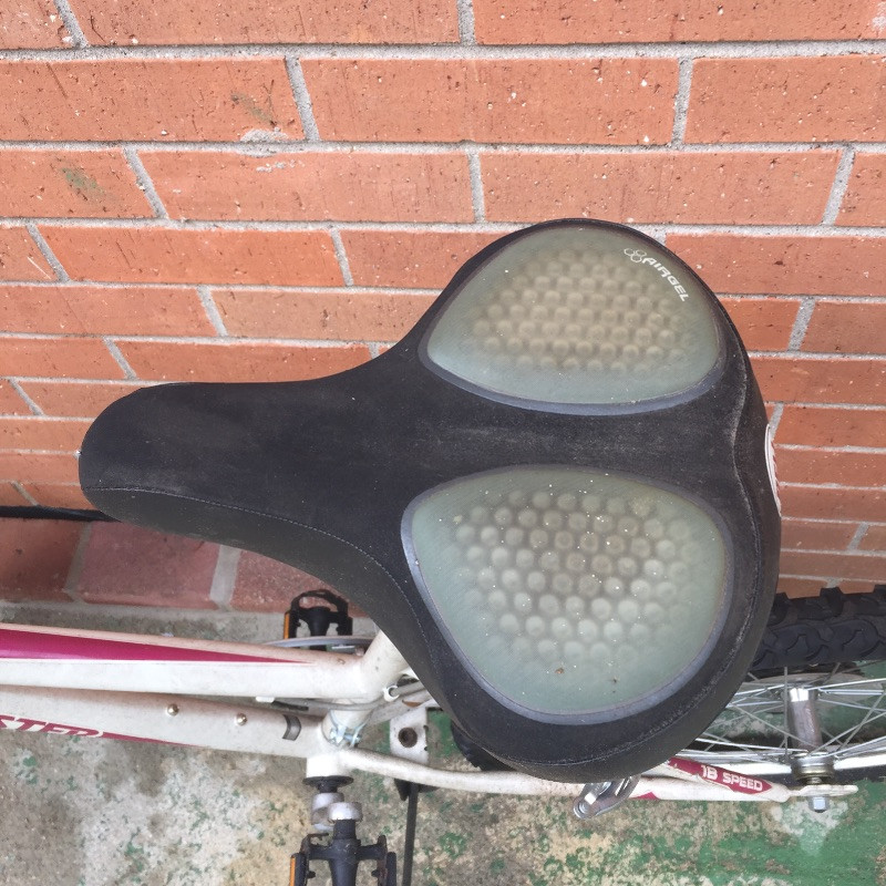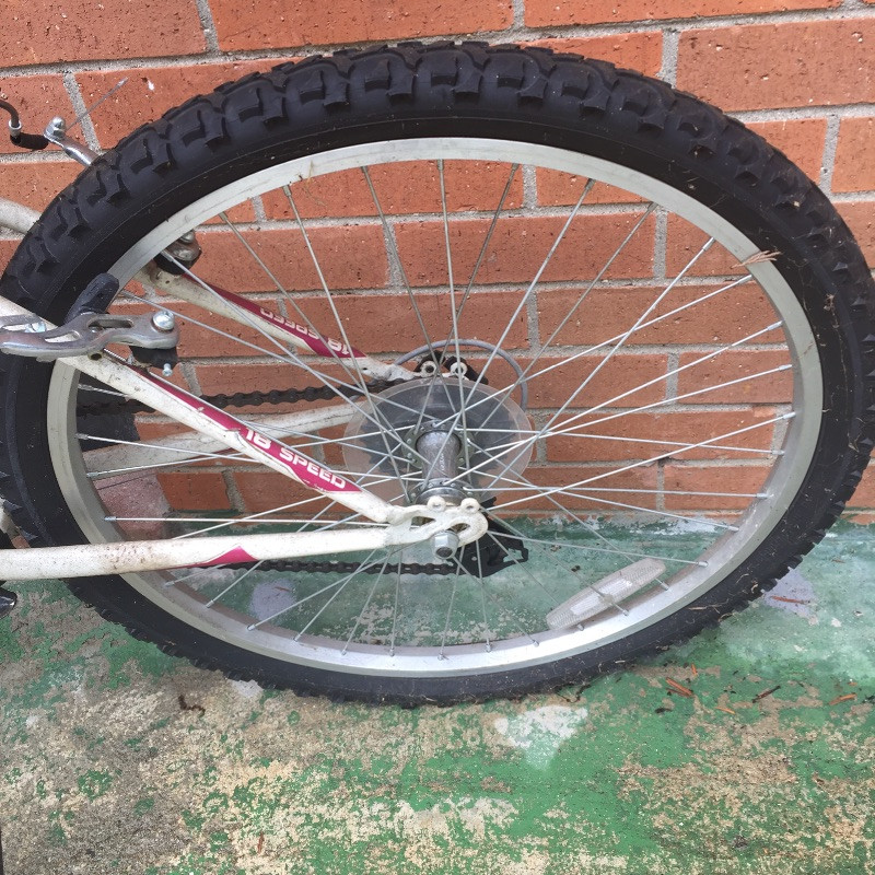 Ride in comfort with this Ladies pink and white bicycle with comfort gel seat. Bike is mostly white with pink accents. 24” with 18 speeds. Tires appear to be in great shape, do need air but have lots of miles left to go in them. All this bike needs is a quick clean-up, fill the tires and you can hit the trails in no time.