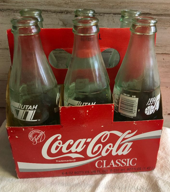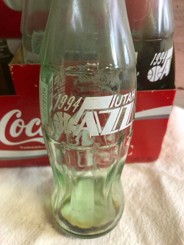 Lot 242 6 pack 8 once 1994 coke bottles UTAH JAZZ
