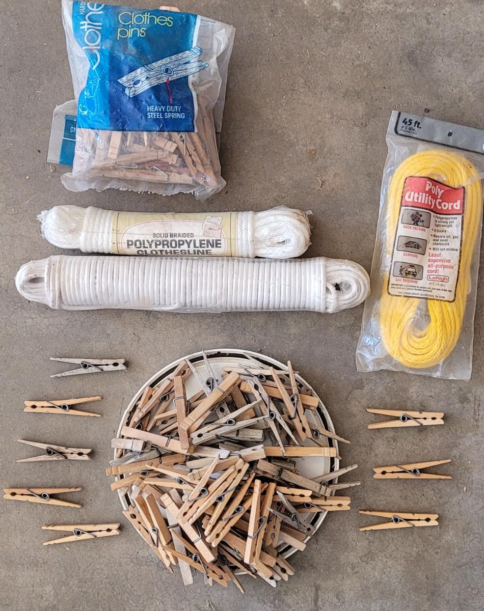 Lot 212: Clothespins and New Clothesline and New Utility Cord