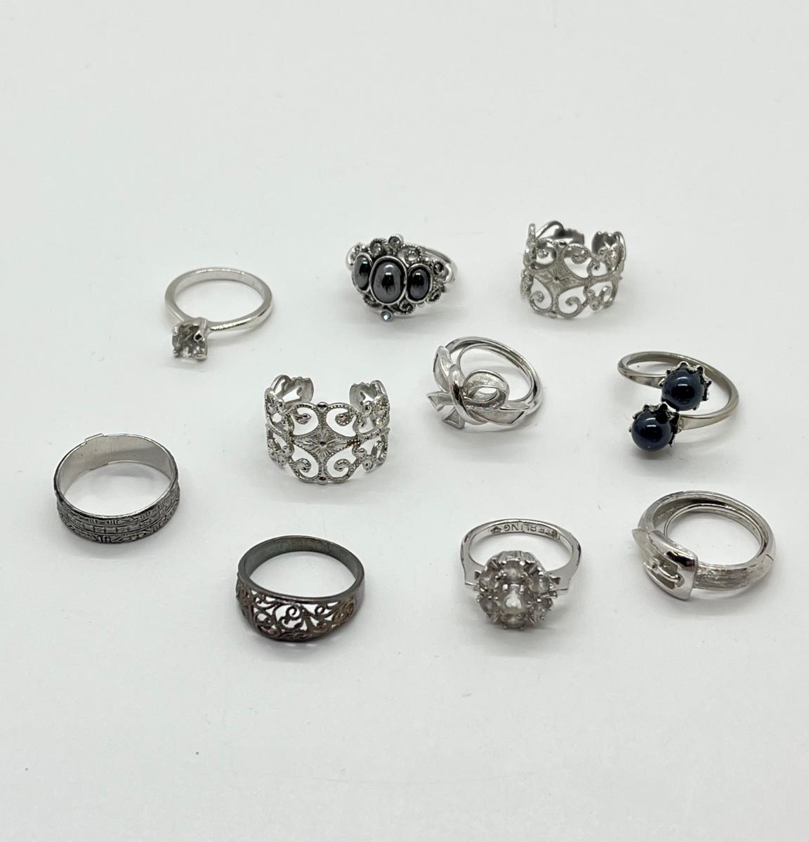LOT 242: Ten Silvertone Costume Rings