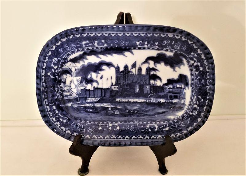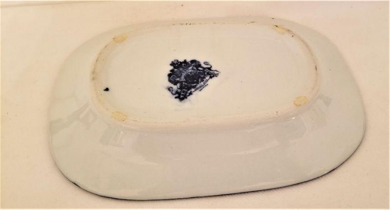 Lovely Dark blue Flow Blue platter - English - 19th Century. Measures 8" x 11". Good antique condition. Mark on reverse - Victoria Ware.