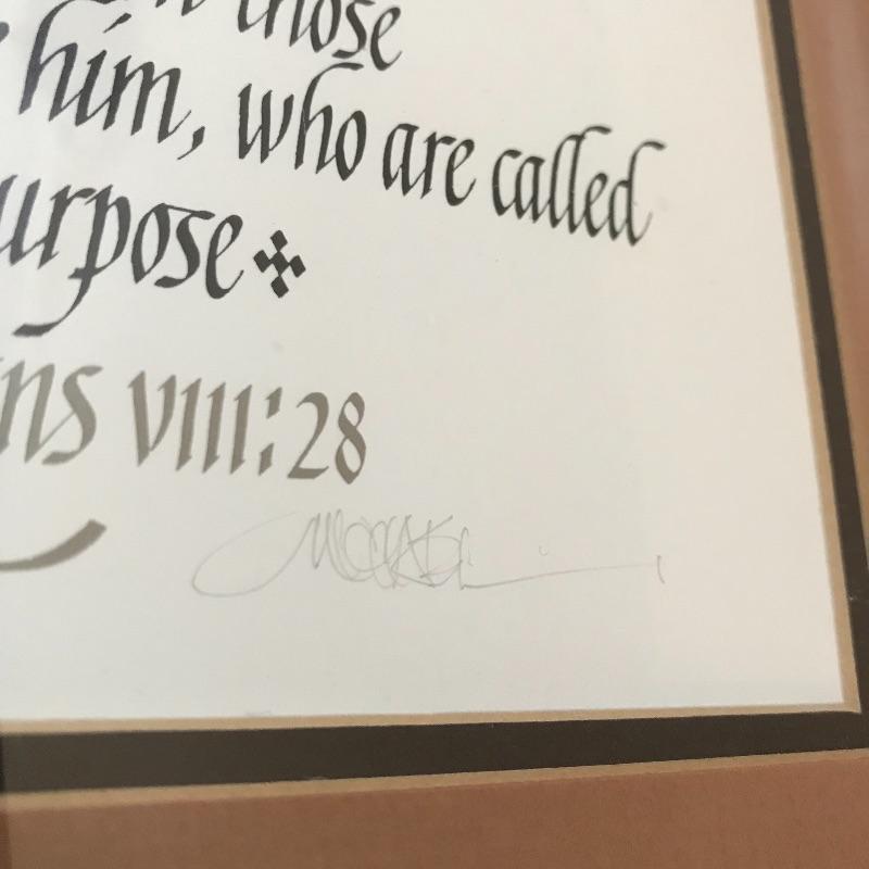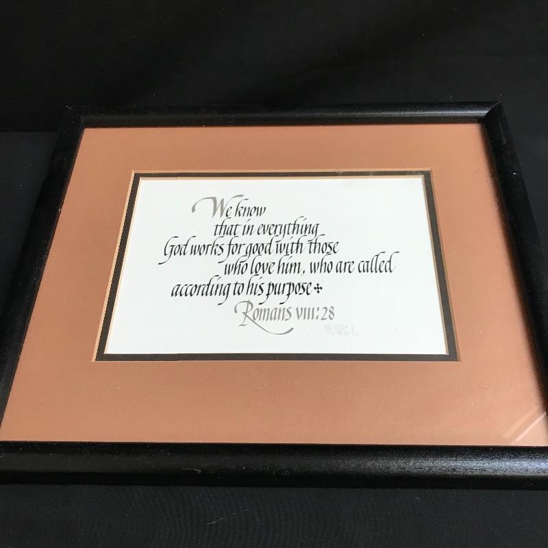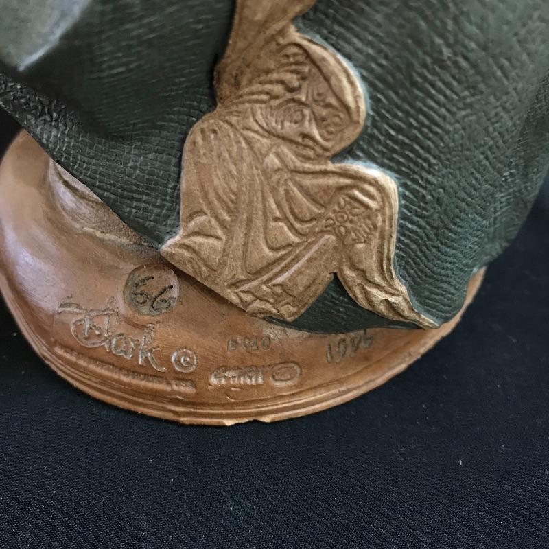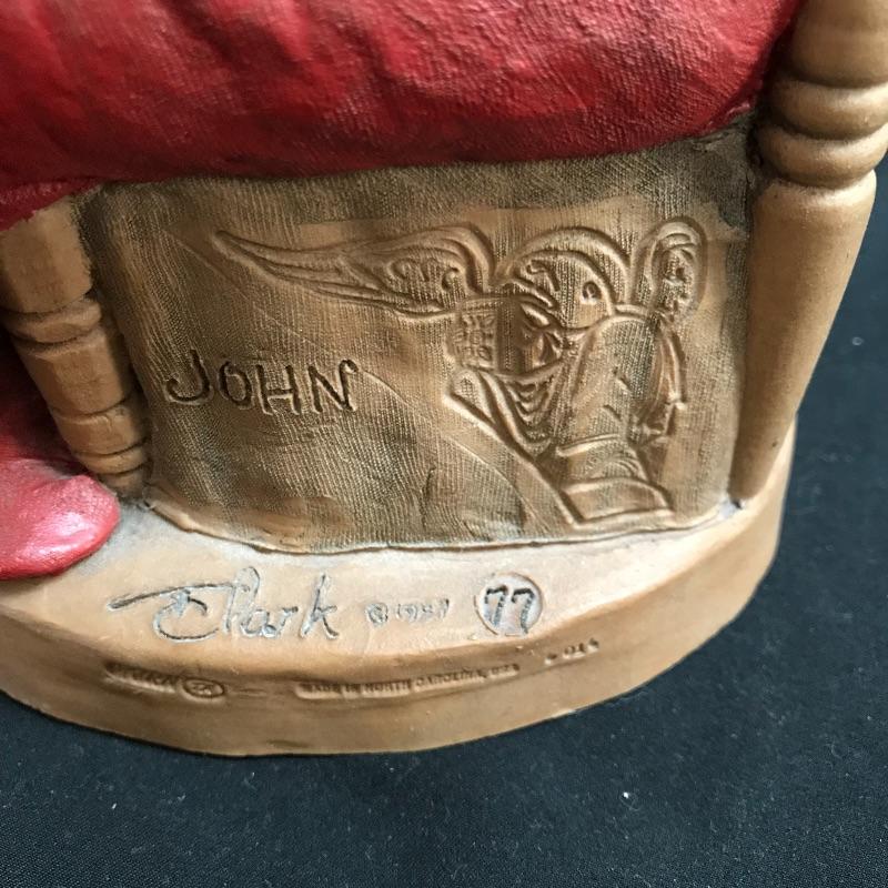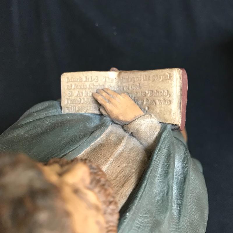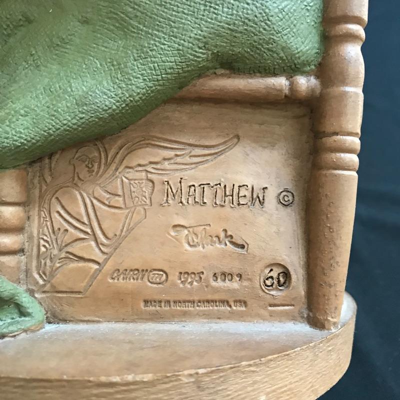 Matthew, Mark, Luke and John statuette collection signed by T Clark and with numbers ranging from 53 to 77. All of these Tom Clark statuettes have verses on scrolls or a book. They are in great shape with lovely details on all sides. Luke is barely the tallest at almost 13”. Statuette collection is accompanied by a signed and framed calligraphic art behind glass. Frame is black colored wood and measures 10.5” x 8.75”. Shipping available.