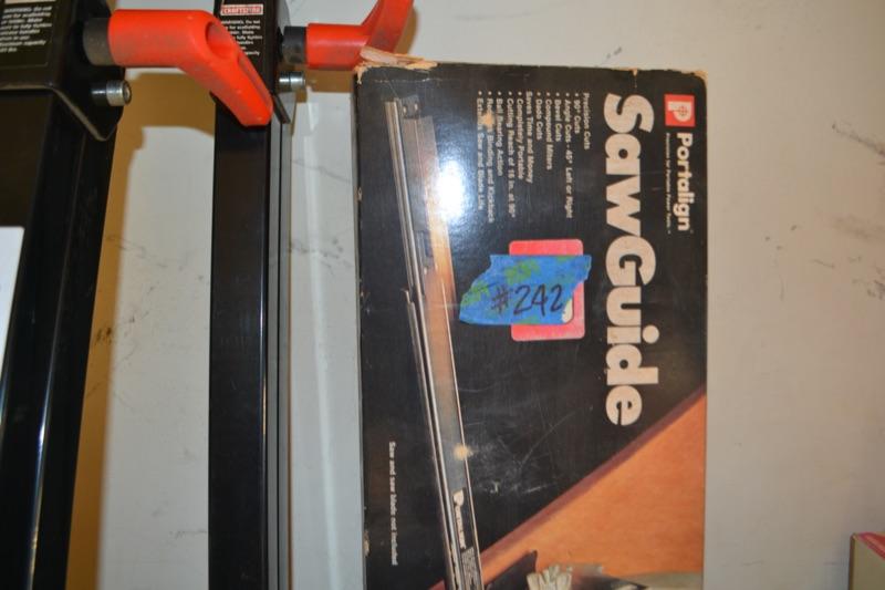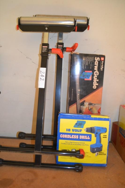 LOT 242. CORDLESS DRILL, SAW GUIDE AND STANDS