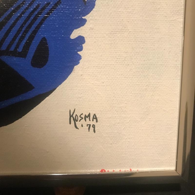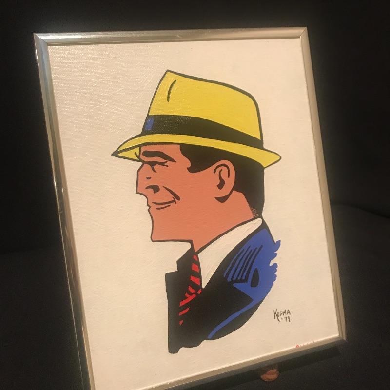 Fun Dick Tracey painting on stretched canvas by a relative of our client who is clearly talented. Nicely framed at 10” x 8.5” Top of frame has some discoloration. Signed Kosma. Shipping available.