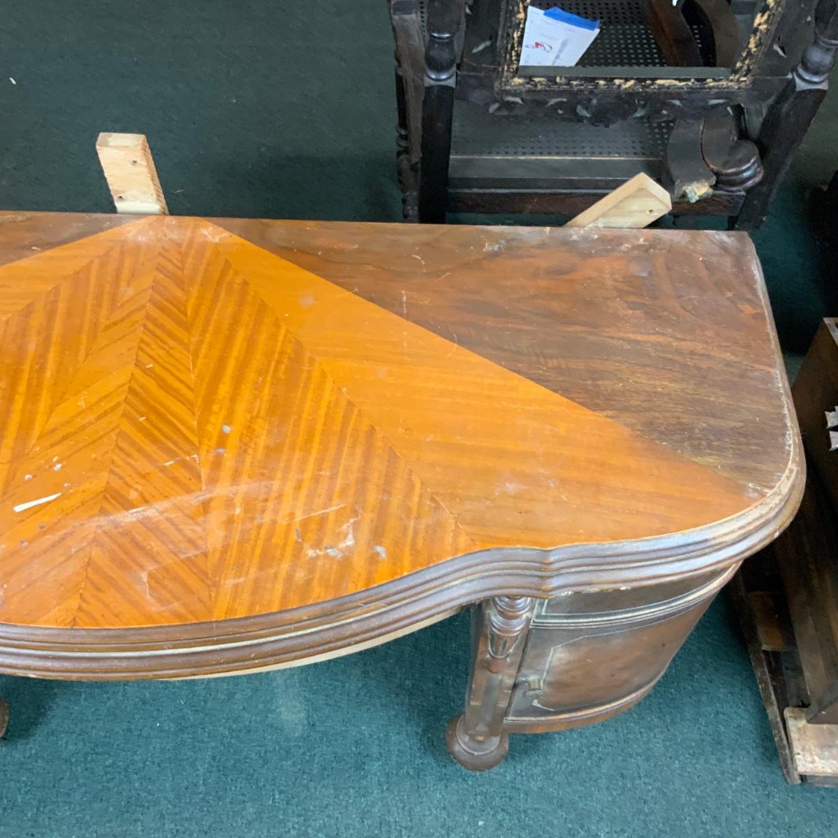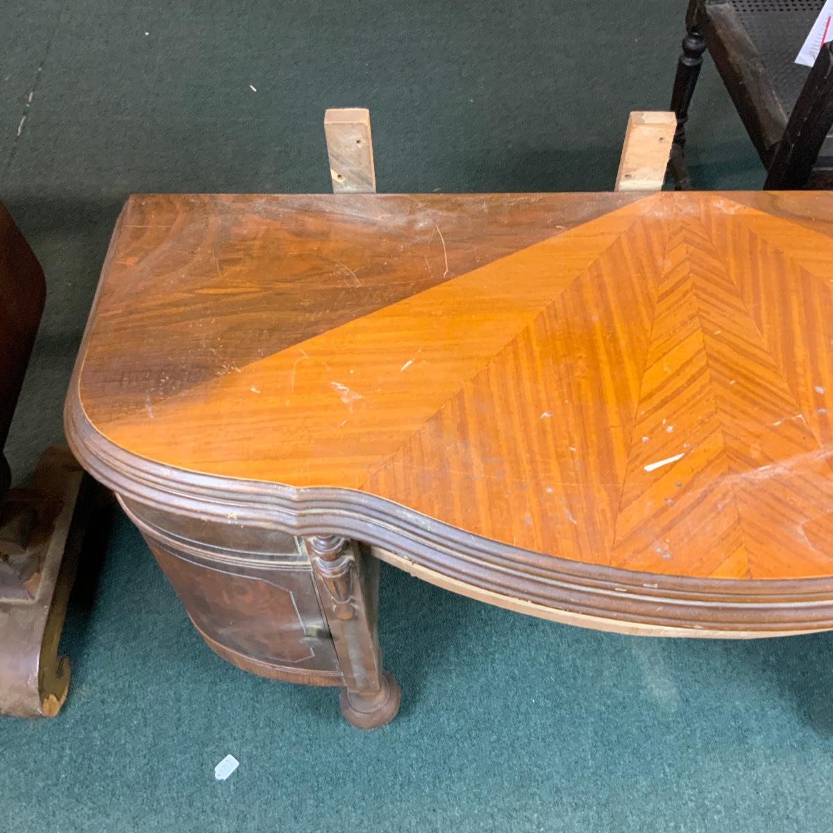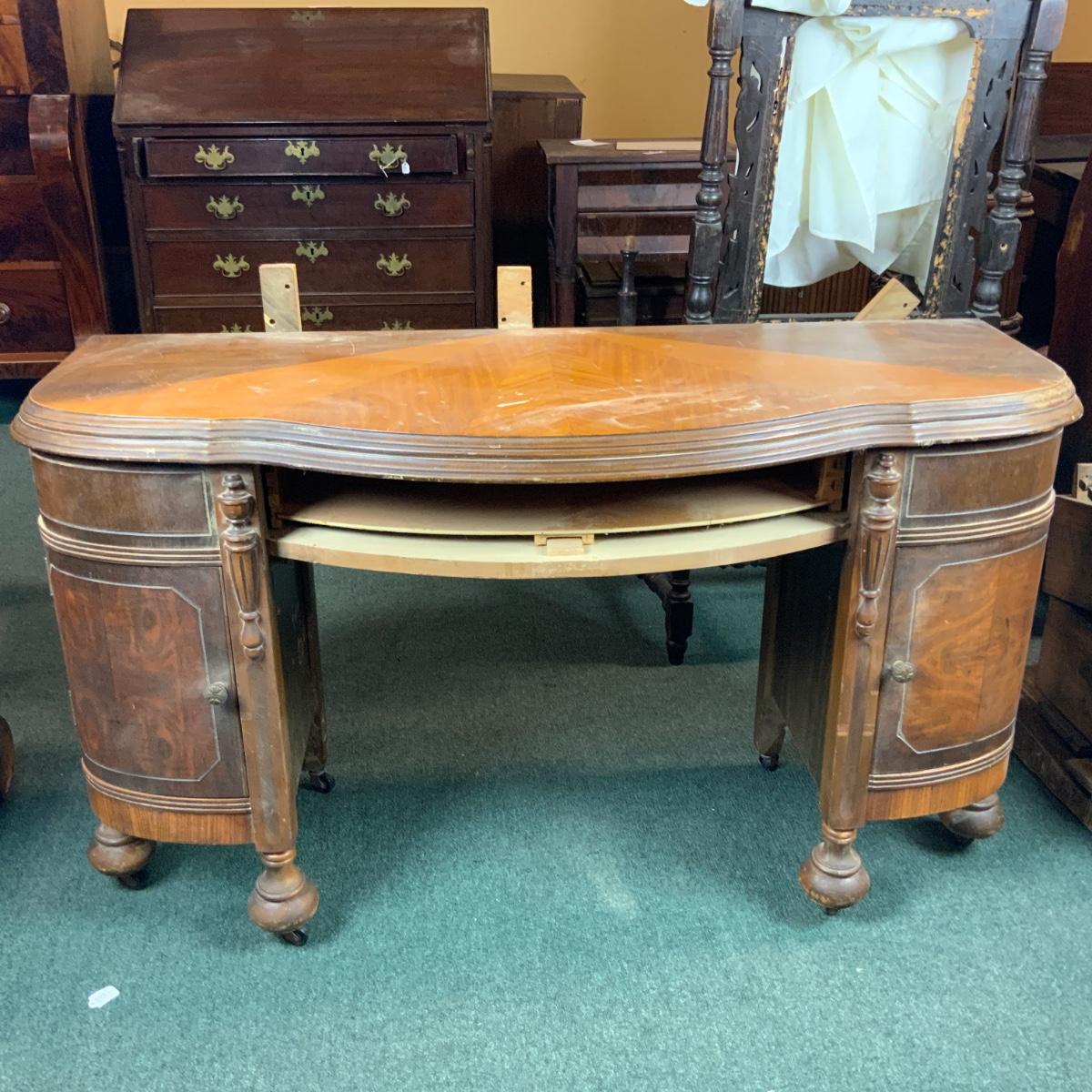 This elegant vanity or a desk could be transformed into some thing beautiful with a little bit of work. //::\\ Please see photos for details and condition. No attempt has been made to hide any imperfections. All items listed in this auction are warehouse items, and need to be cleaned. A majority of the items need restoration as well. All items are sold AS IS and WITHOUT GUARANTEE. If you are uncertain about an item, DO NOT BID. Due to the nature of this online auction in-person inspection is HIGHLY recommended. All Sales are FINAL. Pick Up Times are FIRM. Please confirm with your own schedule that you can pick up in the scheduled times listed in the Terms and Conditions. Any questions please message the auctioneer. DO NOT Contact The Harp Gallery.