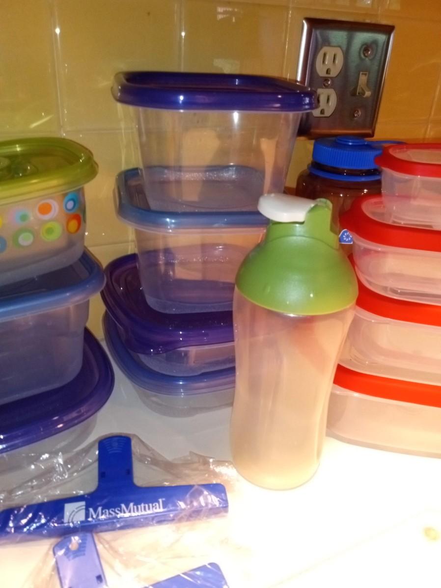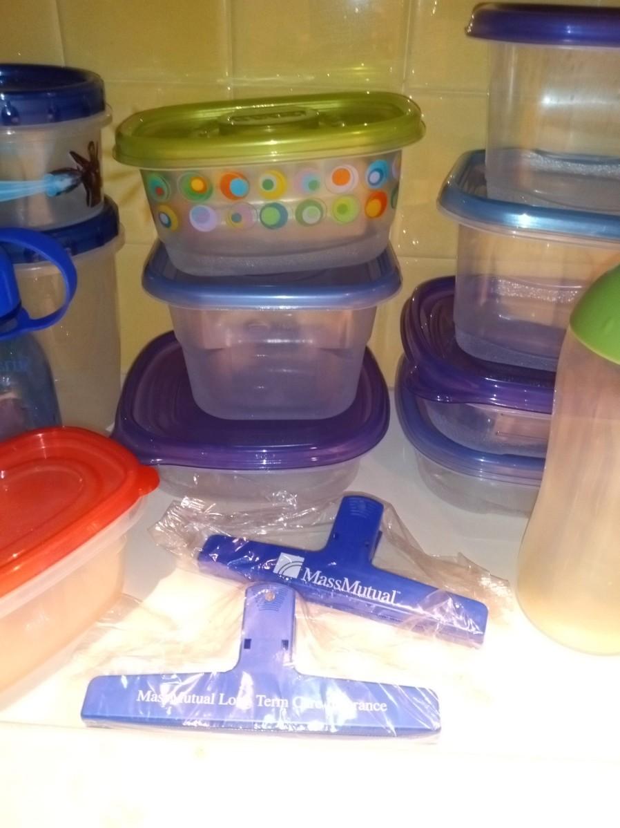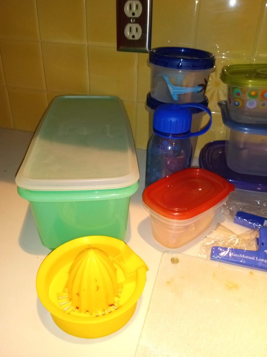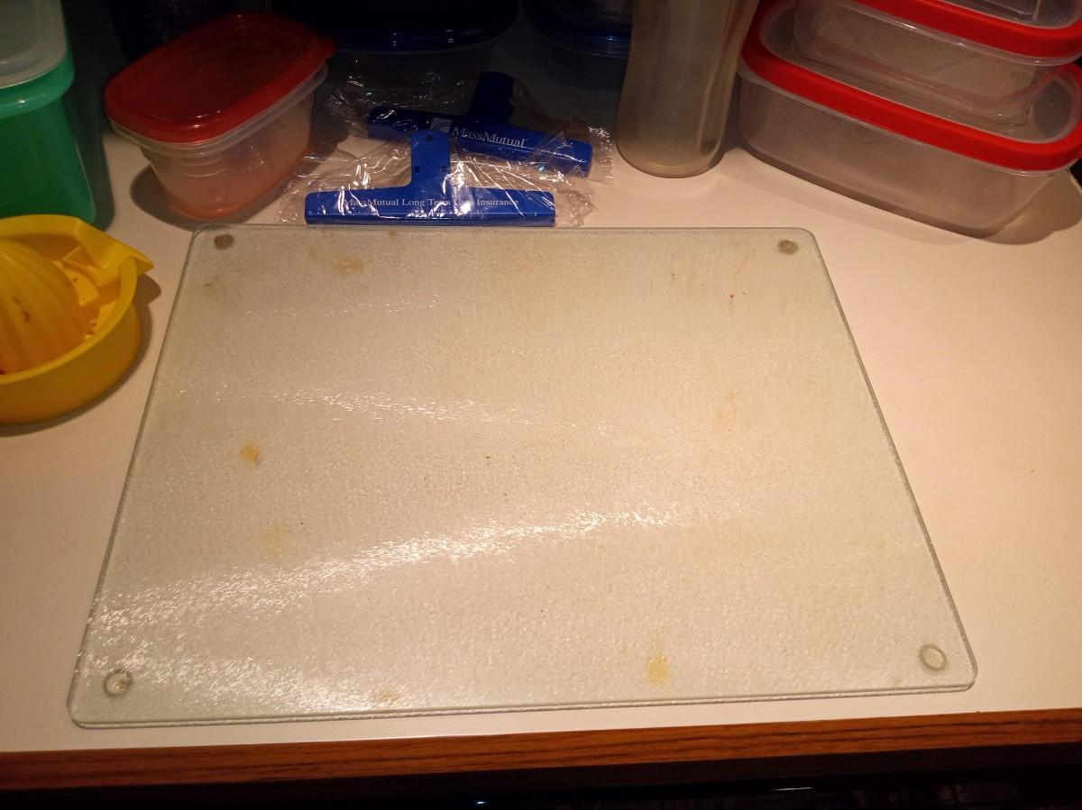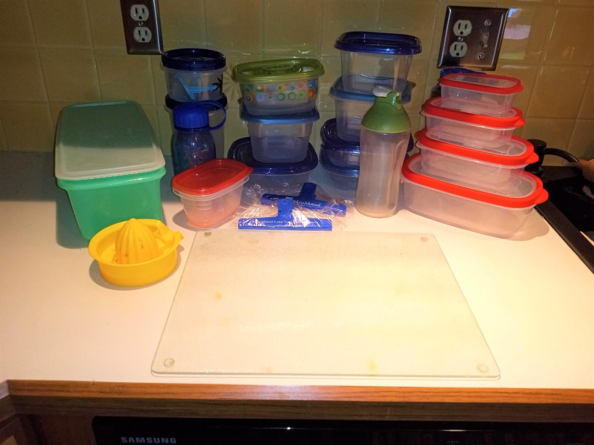 LOT 242  GLASS CUTTING BOARD AND A VARIETY OF FOOD STORAGE CONTAINERS