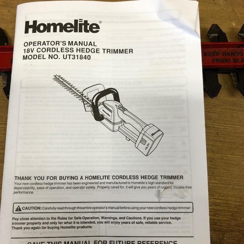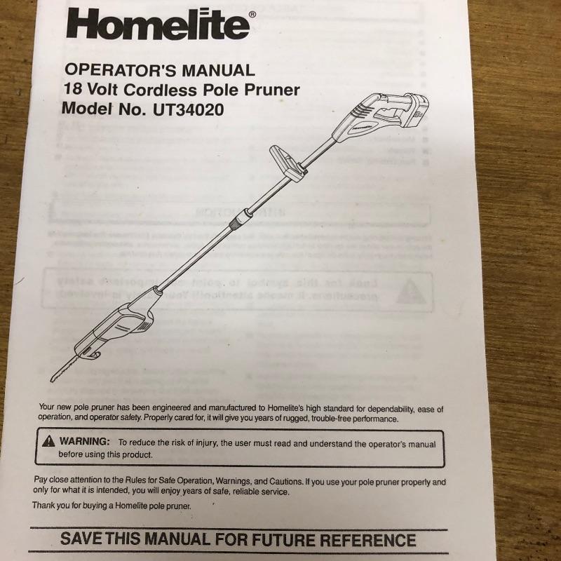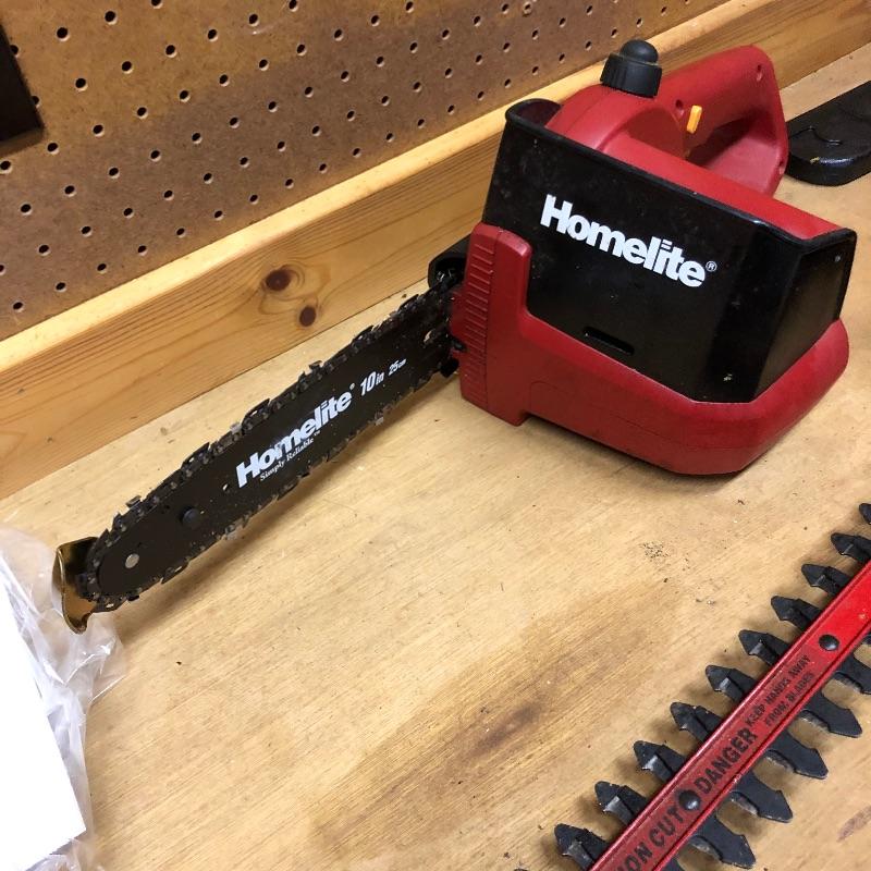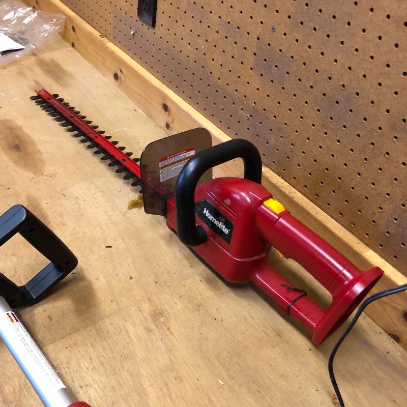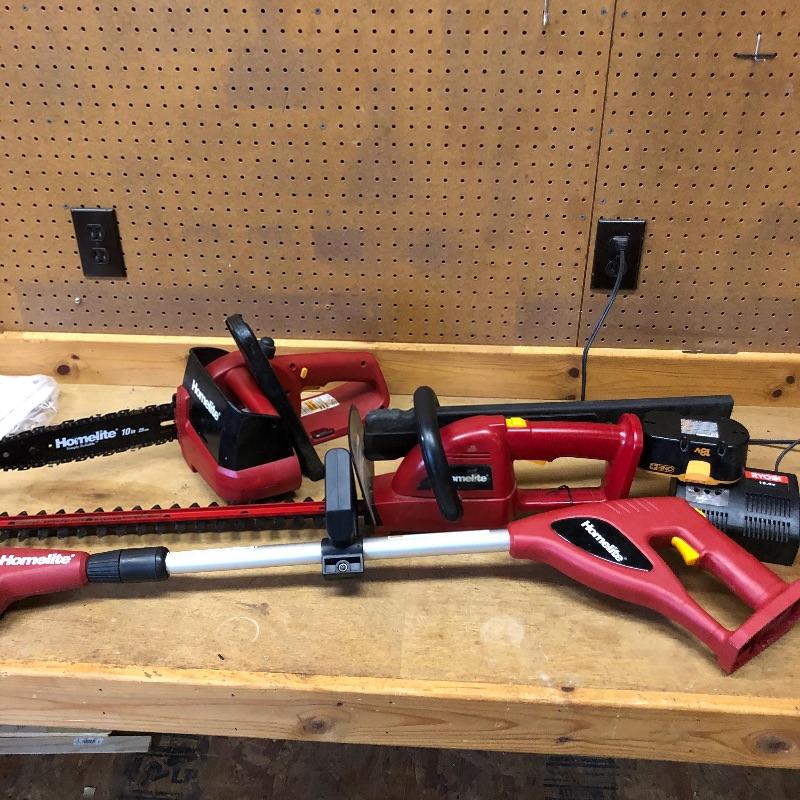 No cables makes for an easier job and with these three battery operated tools you will be outside cleaning up your yard in no time! All three tools are made by Homelite and take the same battery. Lot includes a chain saw, pole pruner, hedge trimmer and one Ryobi battery with charger that has a fast charge option. All were tested and work and come with their respective manuals. The tallest tool, the pole pruner is 48” high.