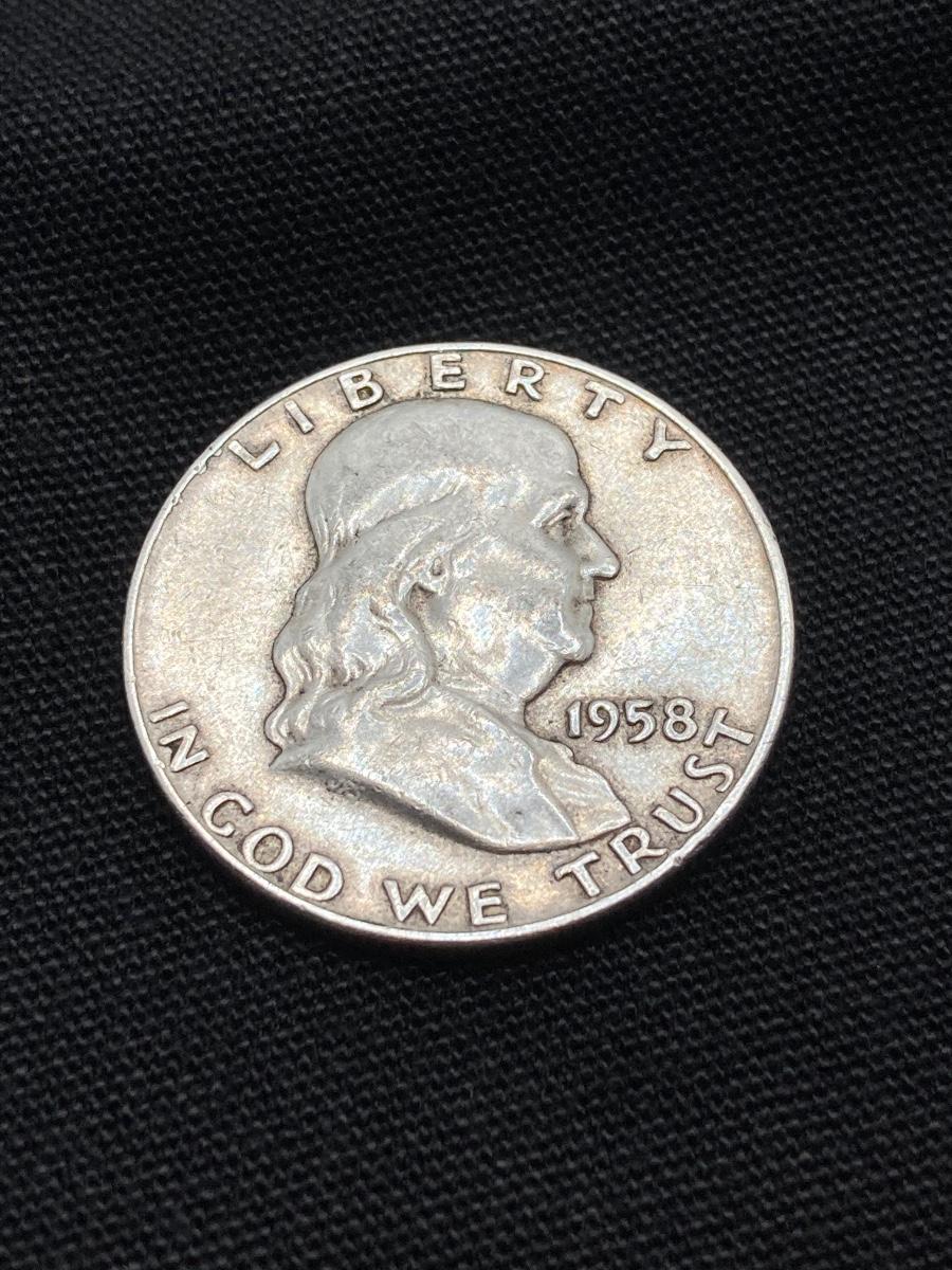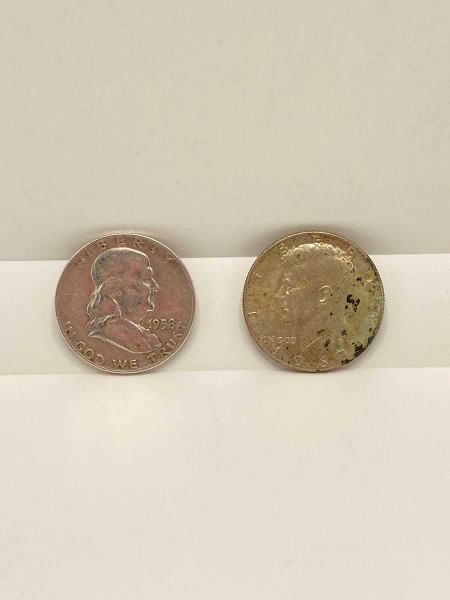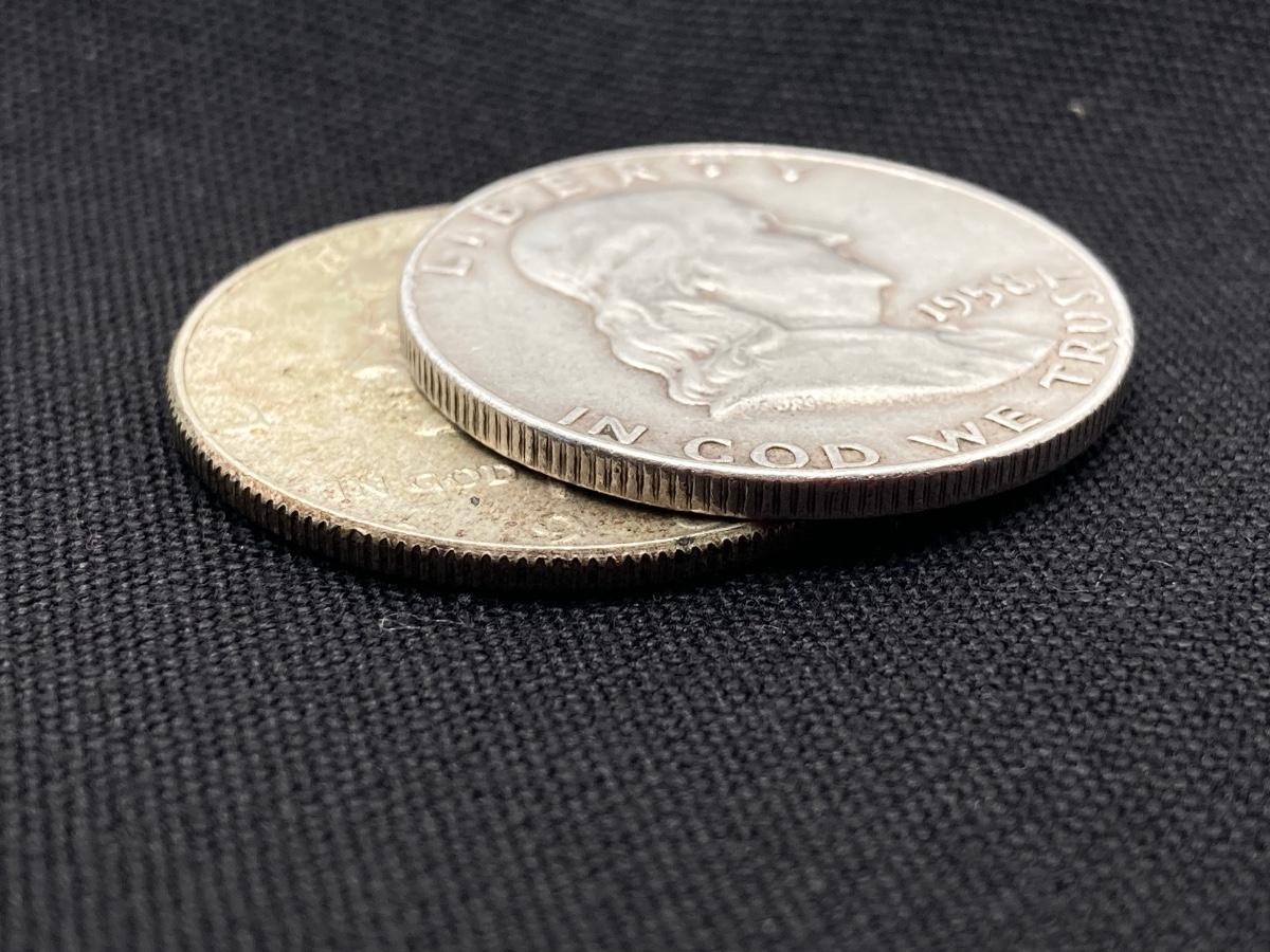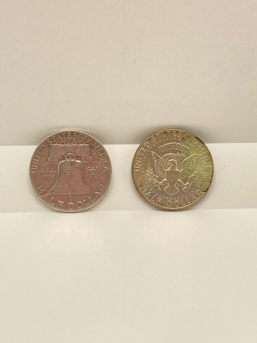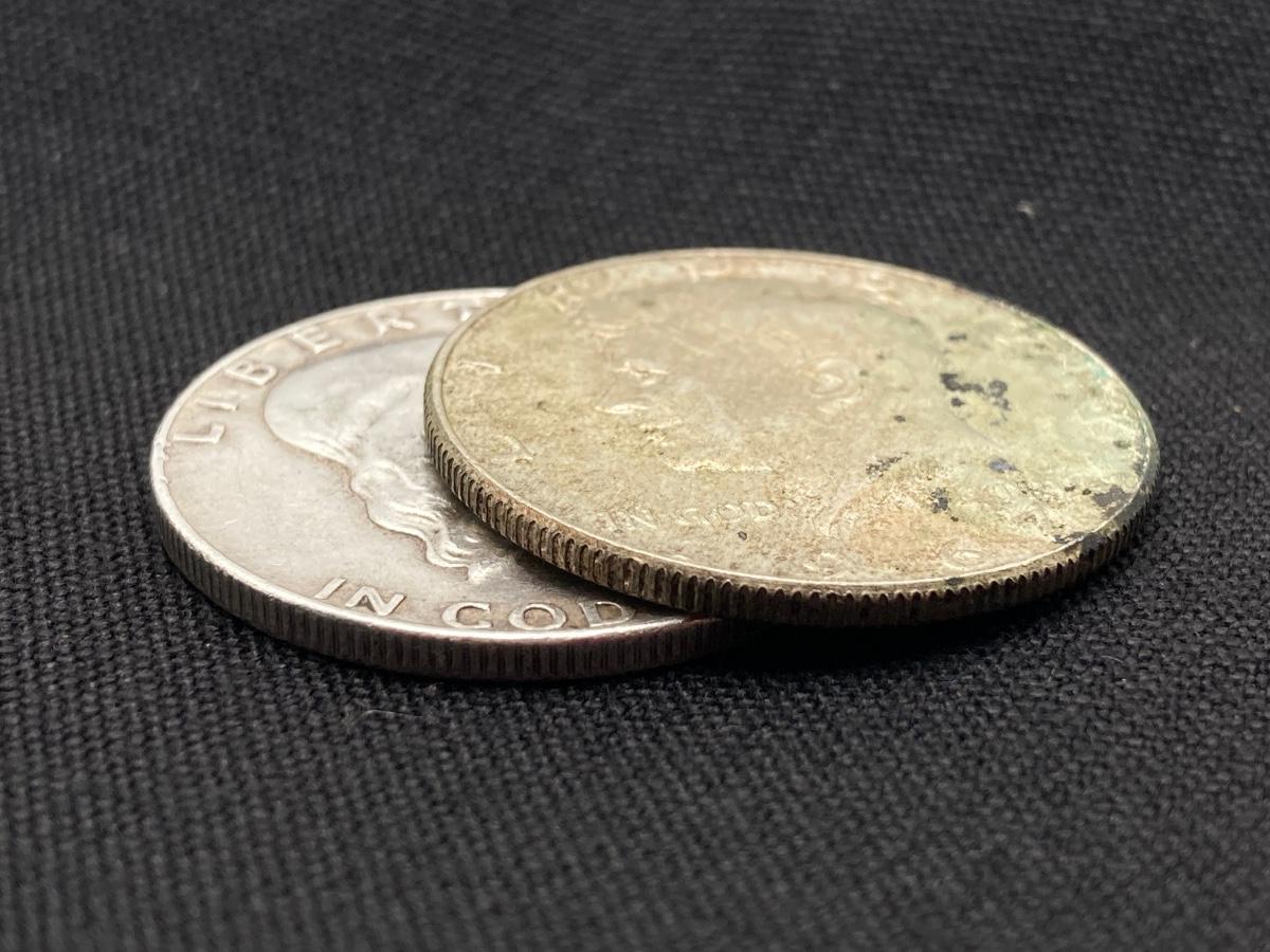 Lot 243: 1958 Franklin Silver Half Dollar Coin and 1967 Kennedy Silver Half Dollar Coin