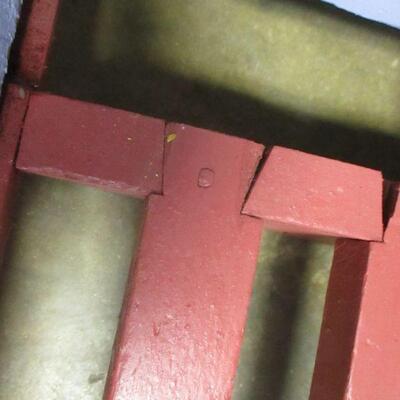 Painted in colors researched as common to the time. Square nail construction with heart cutouts