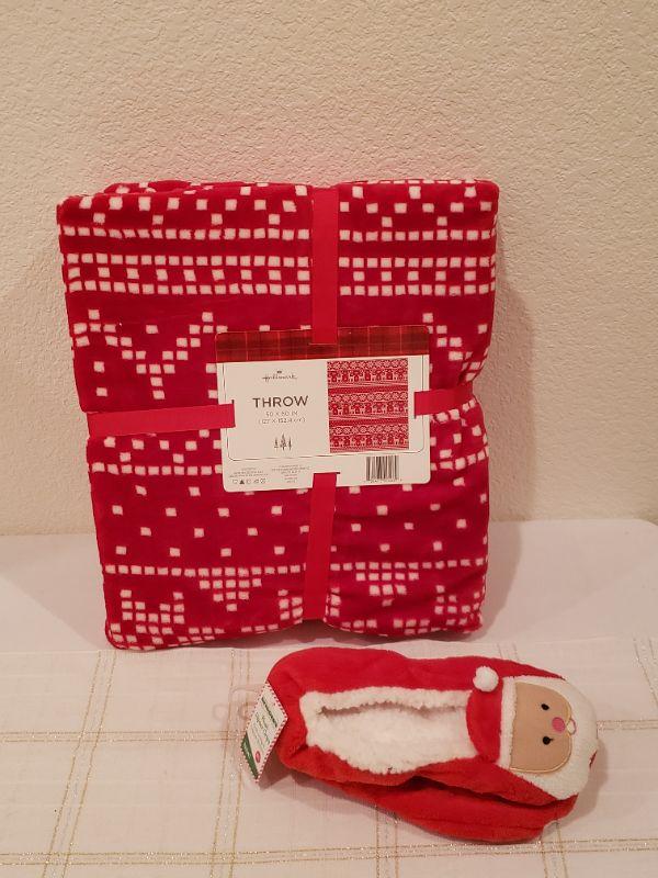 Lot 243: NEW Hallmark Holiday Throw and Slippers