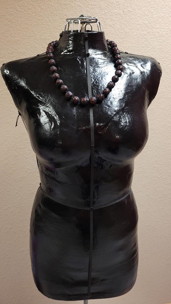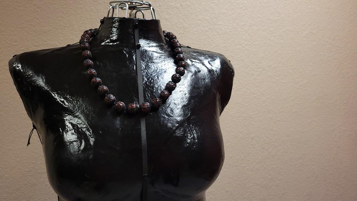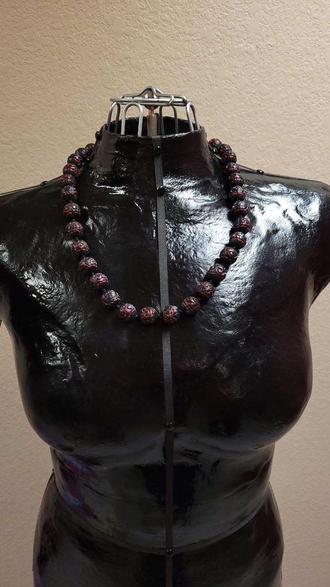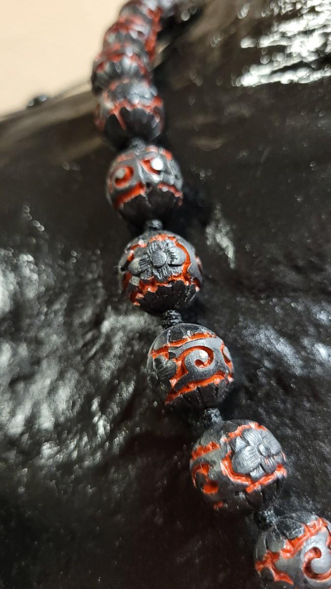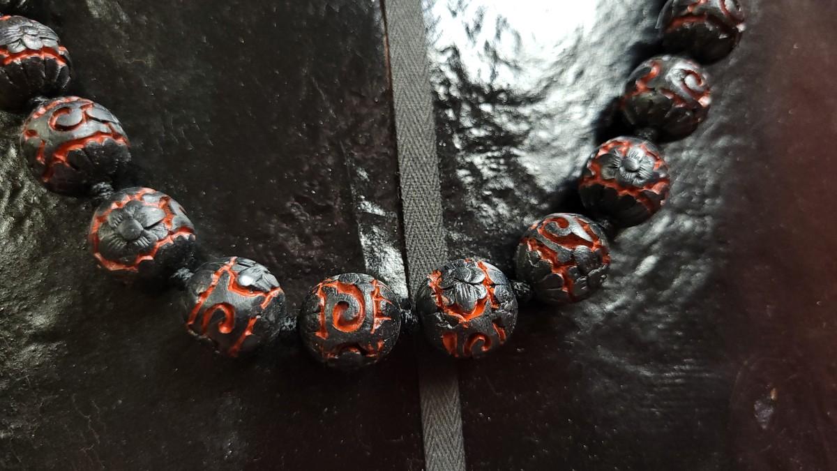 Lot 243: Vintage Chinese Black & Red Carved Cinnabar Necklace