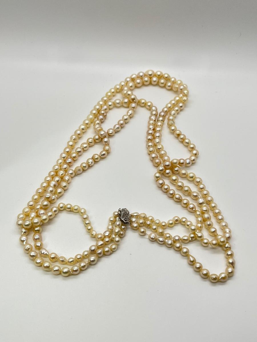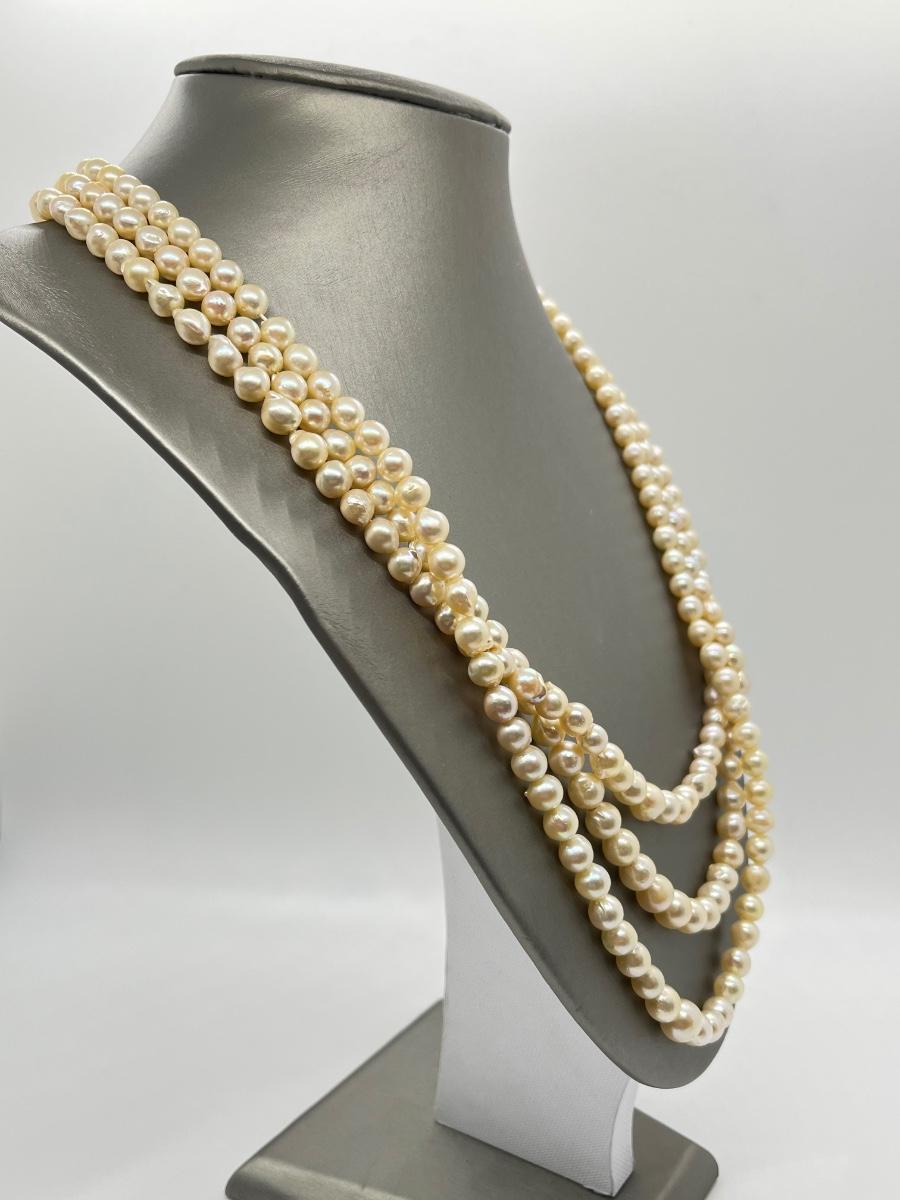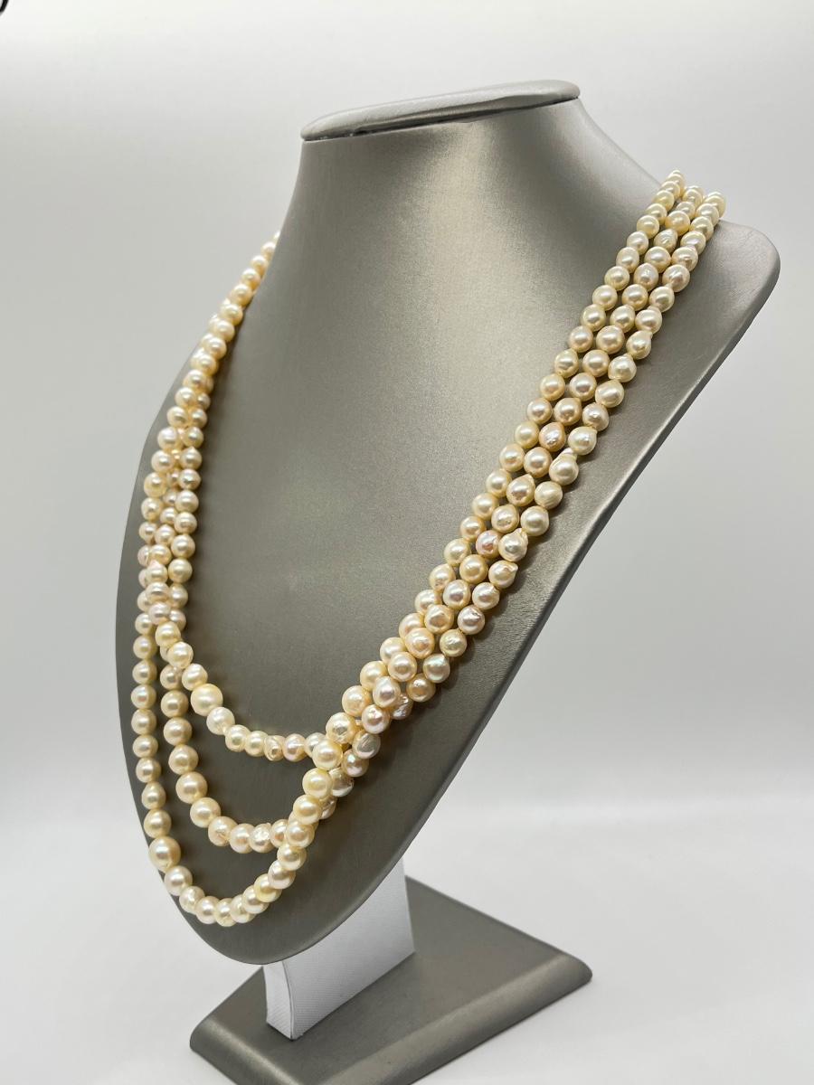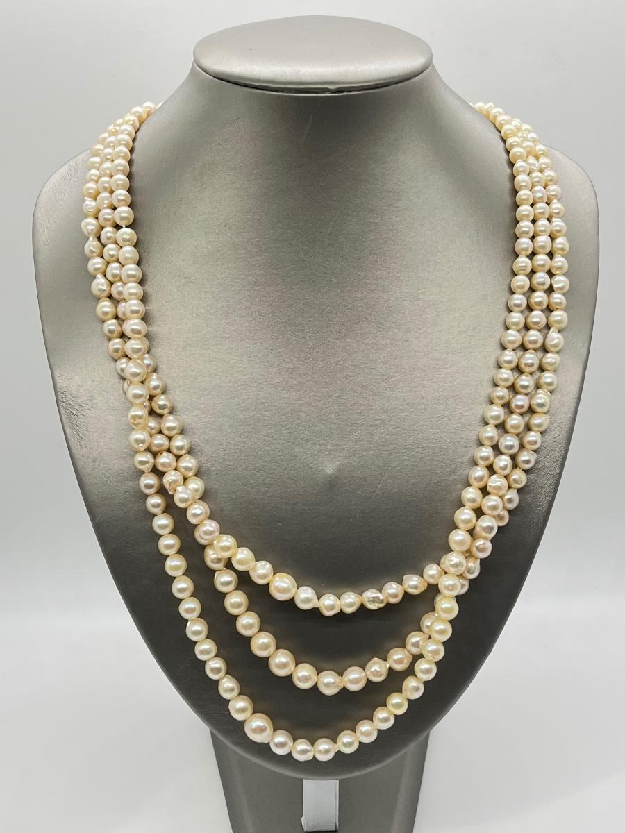 The lovely triple strand necklace is at the longest point 26". Please see all pictures as they are the best representation of the items. The pictures show condition, measurements if taken, and what is included in the lot. Due to the large amount that we photograph and the time frame, we are not always able to take measurements. All items unless noted, are pre-owned and have been used. If you purchased furniture, you must bring help. We do not allow one person to carry large furniture out on their own. Bring help, tools and a truck for the safety of our client’s homes, and your personal safety. Any damages that result to the property including walls, and floors due to moving of the furniture will be charged to the buyer. Company policy. Thank you.