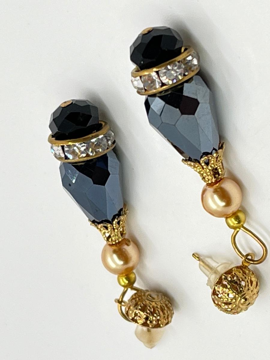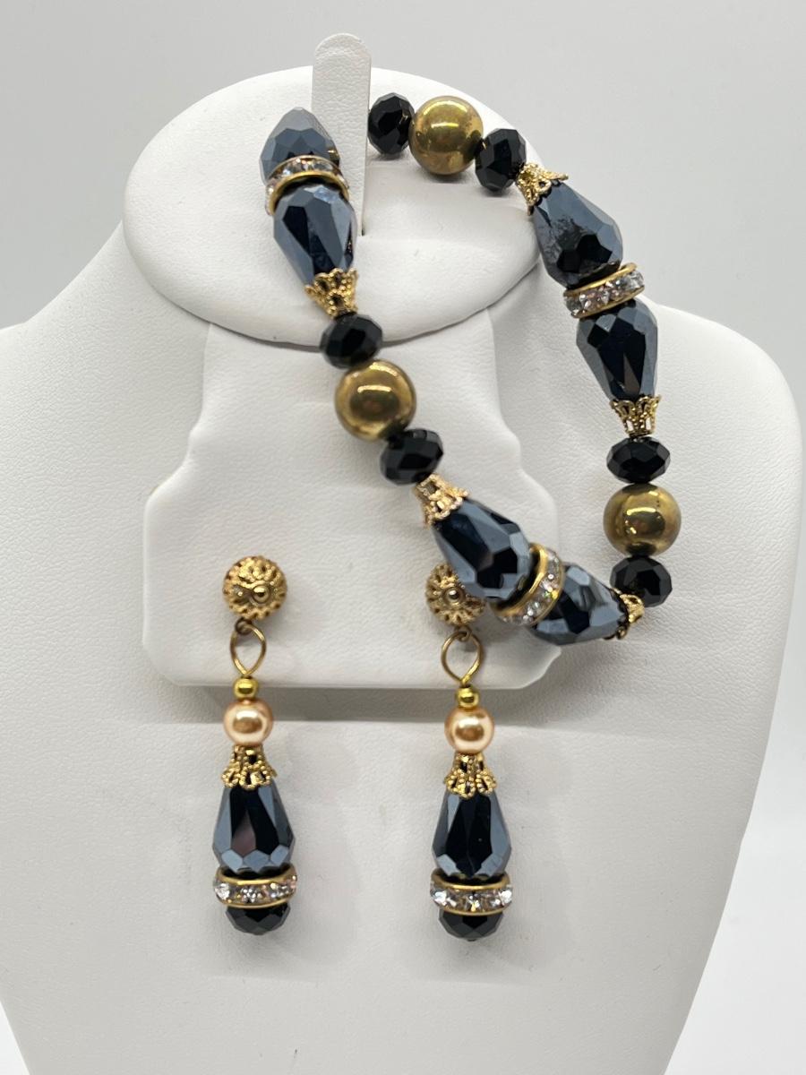 Lot 243: Triple Strand Faux Pearl Necklace, Aurora Borealis Stretch Bracelet and Pierced Earrings