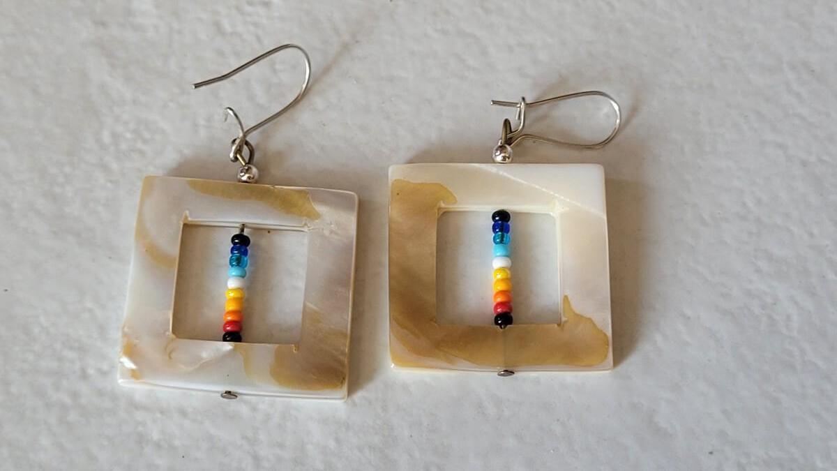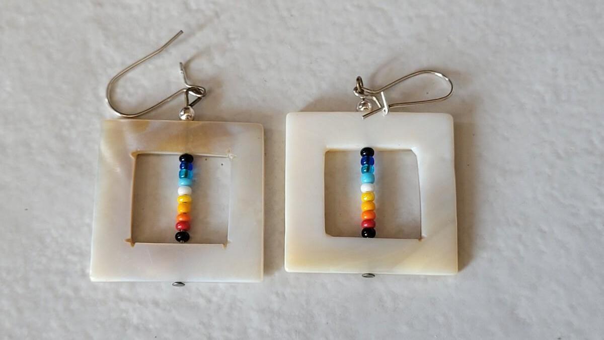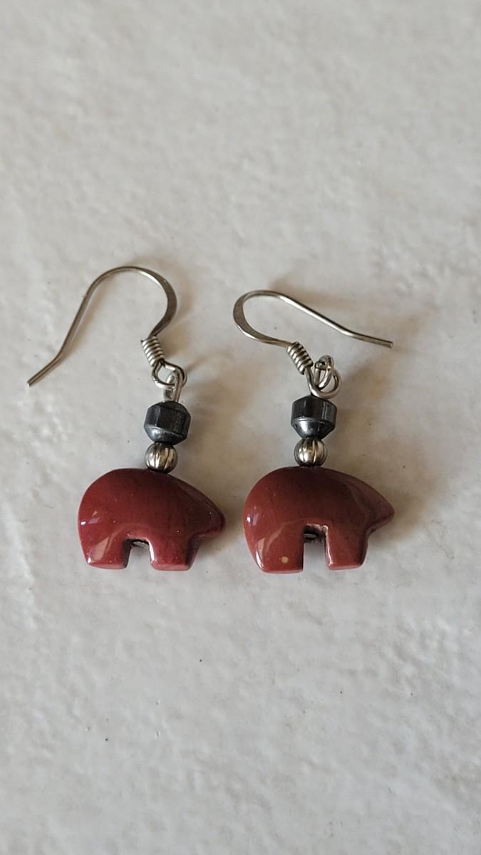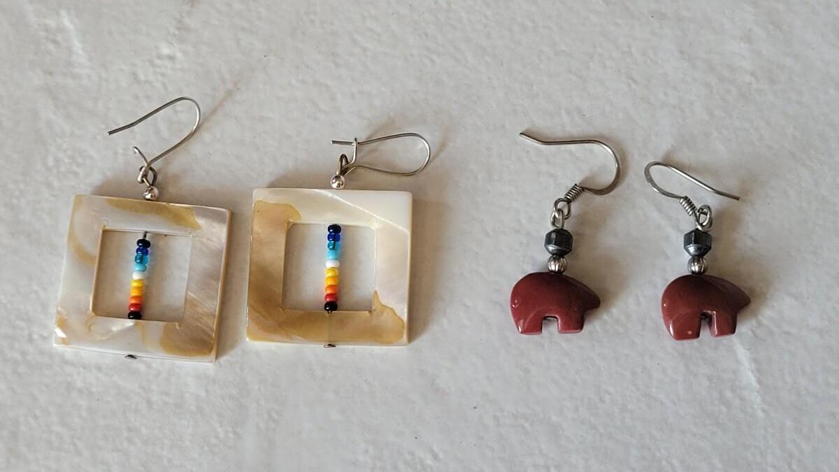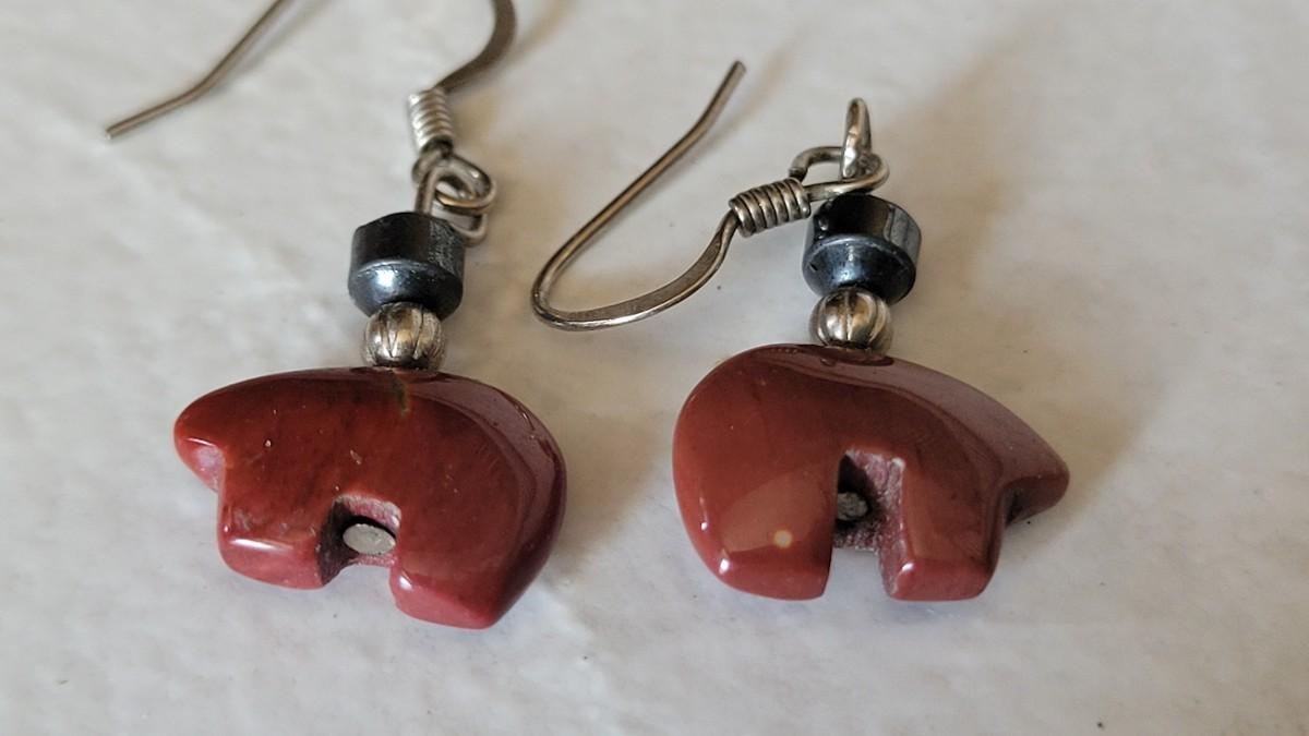 Lot 243: Native American Fetish Bear and Abalone &Seed Bead Earrings