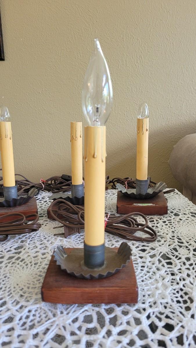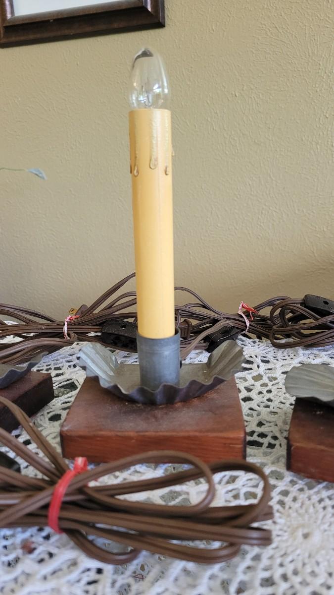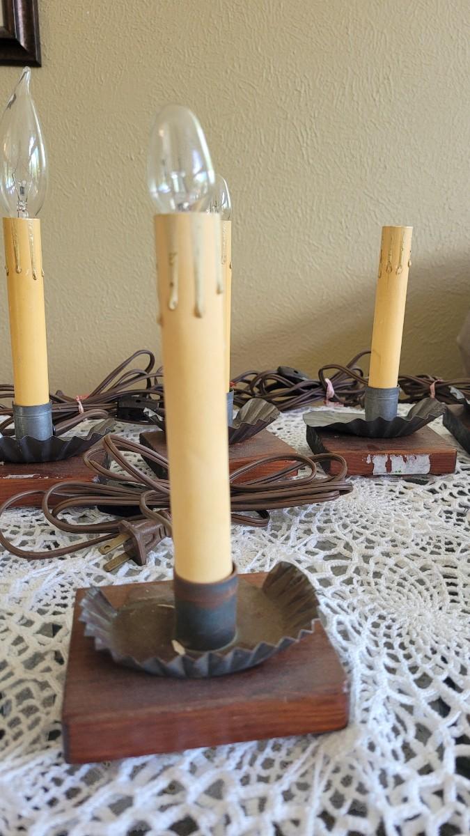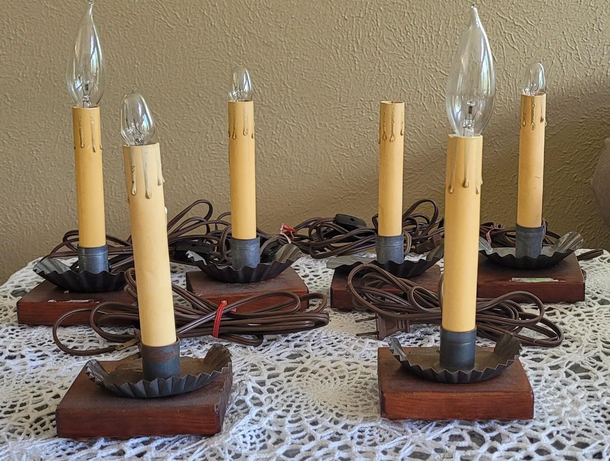 Lot 243: (6) Holiday Candles with Wood and Tin Bases